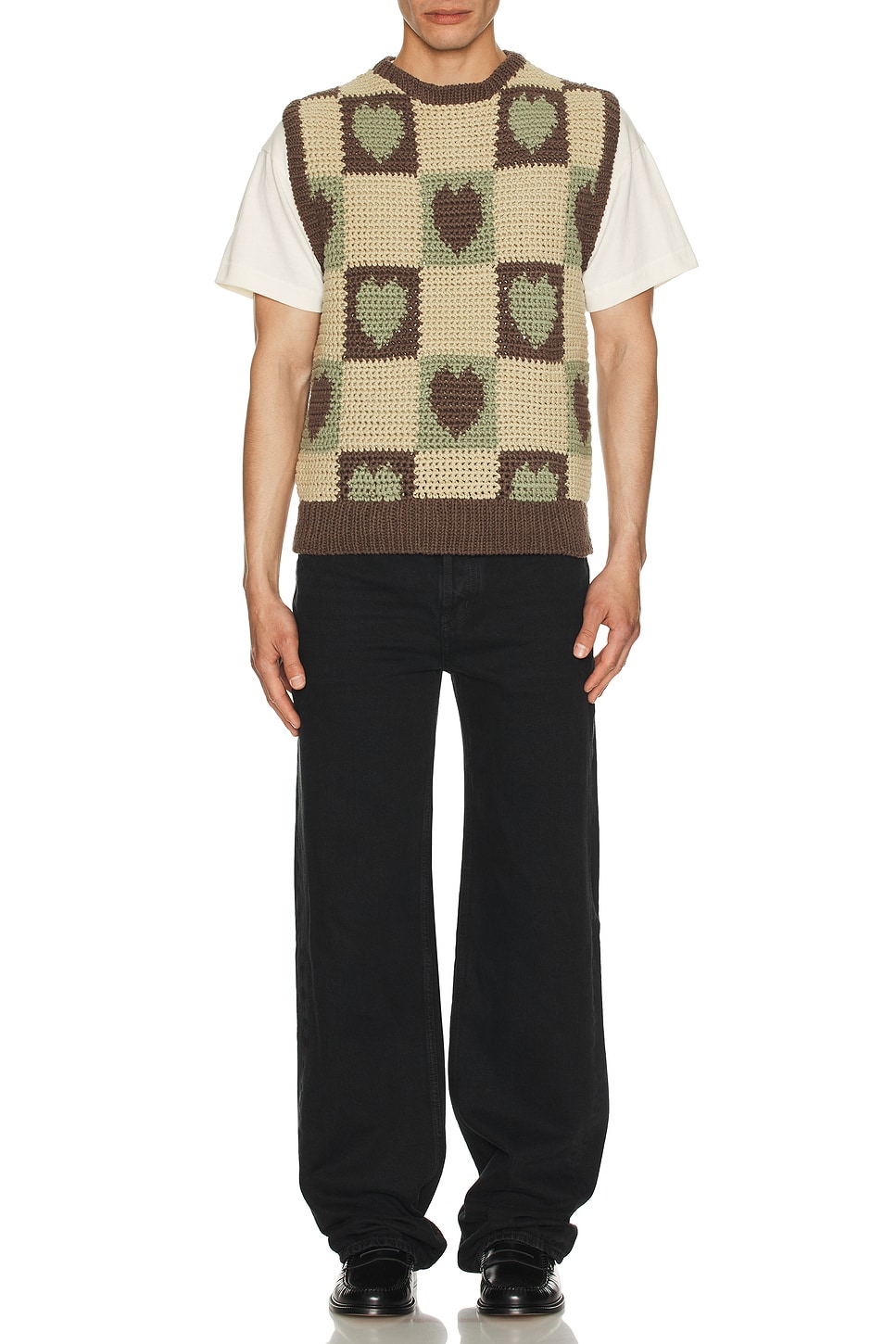 Вязаный жилет с сердечками крючком Rice Nine Ten, Brown
