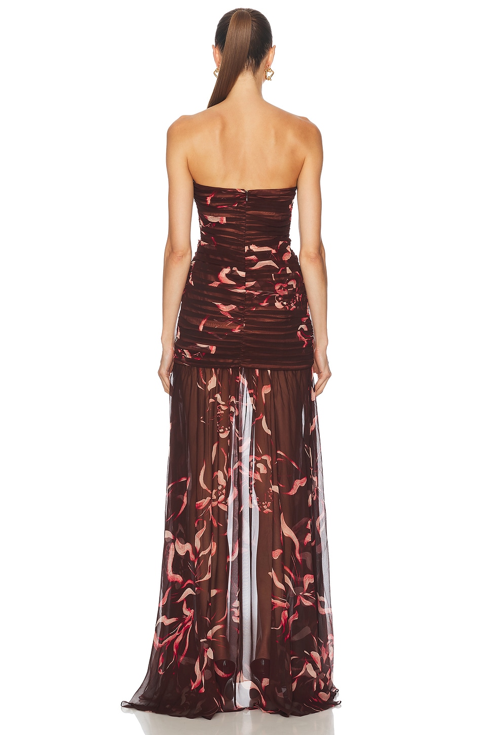 Шифоновая ткань со сборками на высоком разрезе спереди.