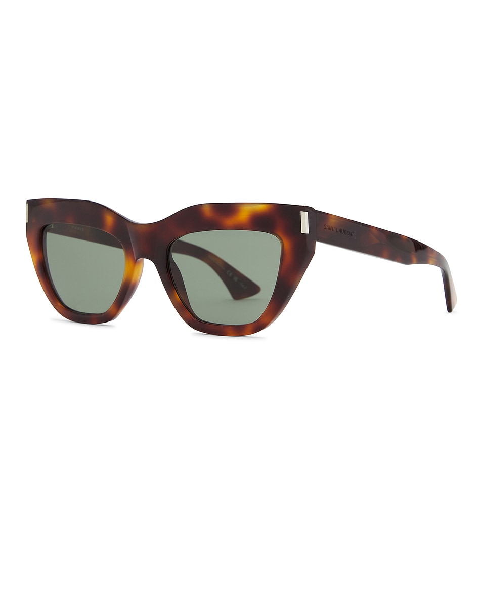 Cat Eye Солнцезащитные очки Saint Laurent, Havana & Green