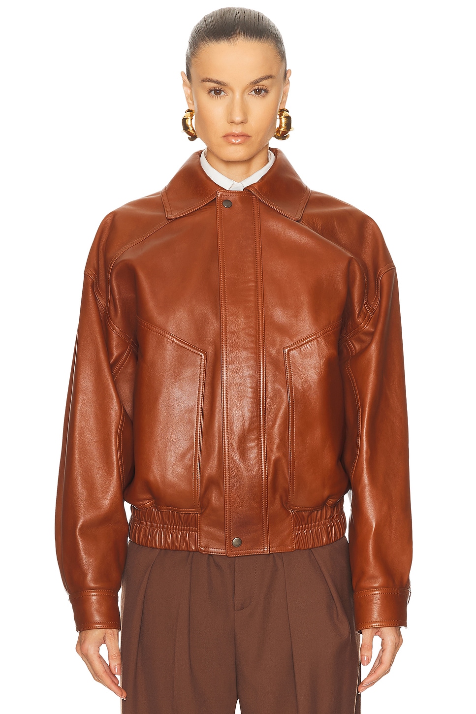 Кожаная куртка-бомбер Saint Laurent, Marron Epagneul