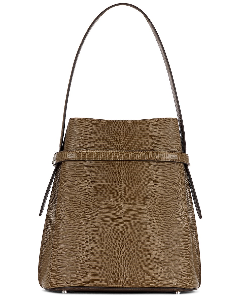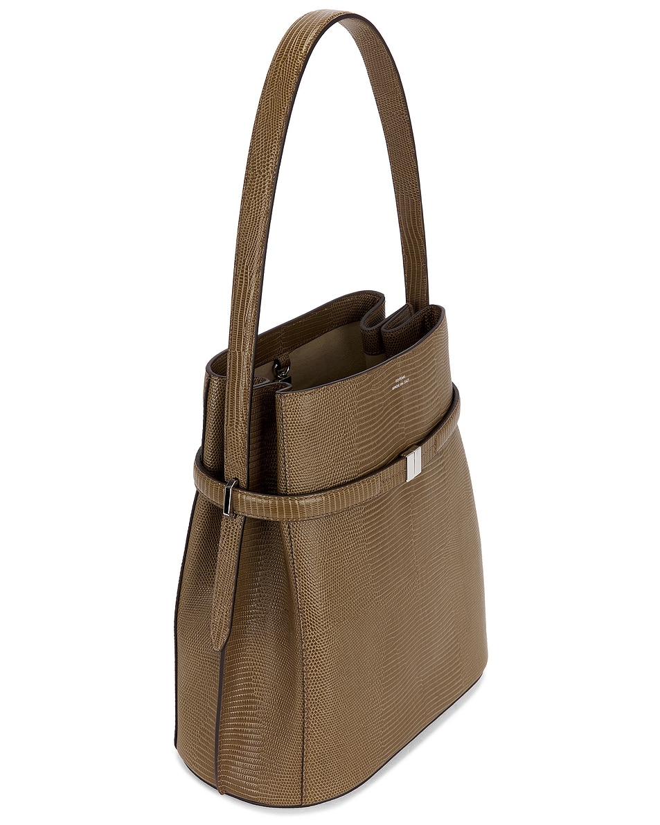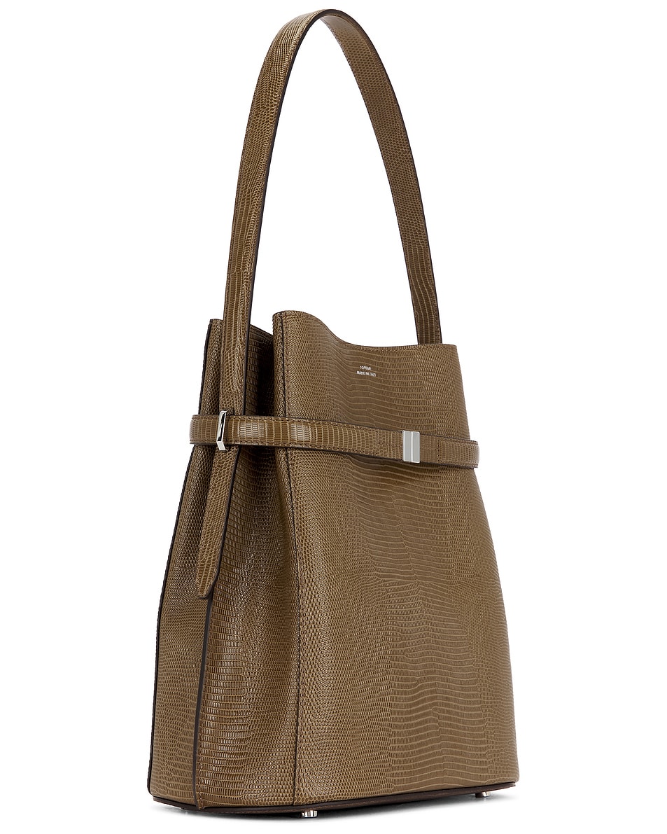 Сумка-ведро Belted Lizard с тиснением Toteme, Dark Olive