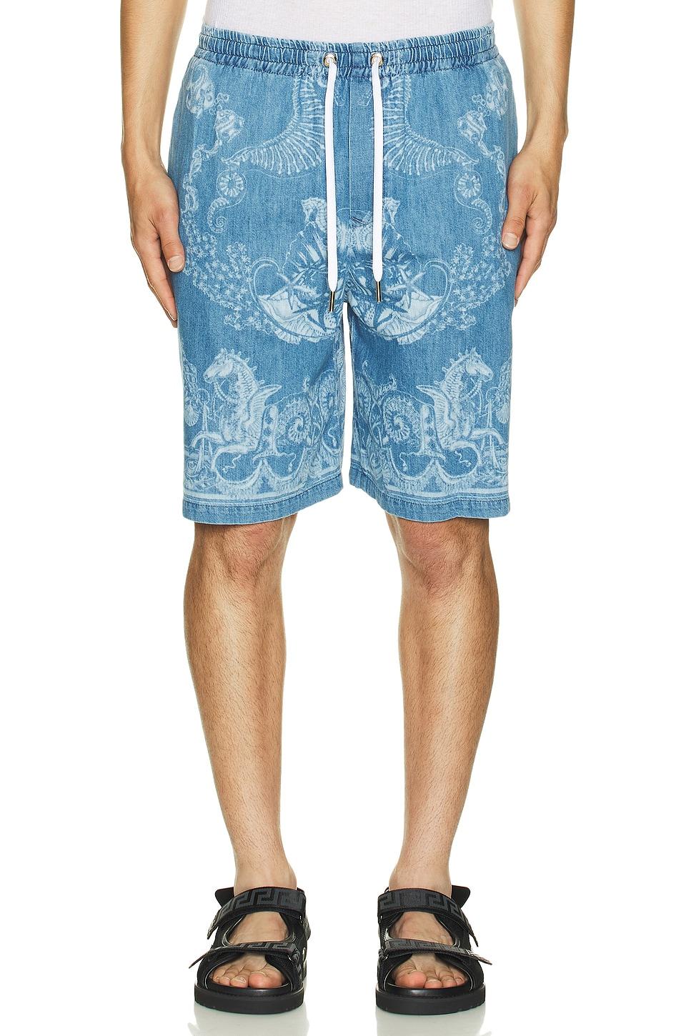 Laser Denim Holiday Print Шорты Versace, Washed Medium Blue