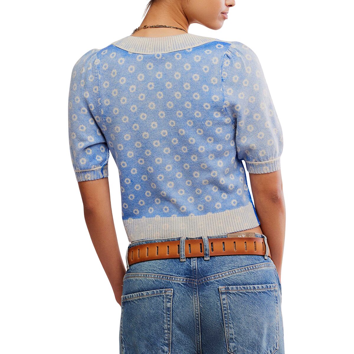 «Это одна из моих любимых многослойных вещей - невероятно мягкая, облегающая, но не обтягивающая, а принт придаёт ей индивидуальность. Она отлично смотрится с платьем или в сочетании с джинсами с высокой талией, создавая ретро-образ, который по-прежнему актуален».