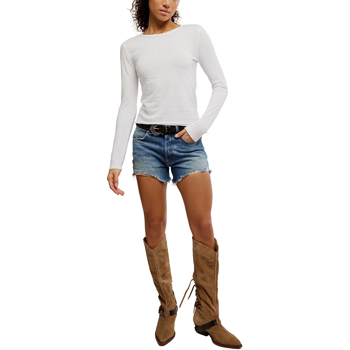 «Это тот тип лонгслива, который я всегда держу в запасе. Он мягкий, слегка облегающий, но не тугой, а текстурированные швы придают ему достаточно визуальной привлекательности, чтобы он выглядел по-особенному. Это один из тех топов, который подходит ко всему».
