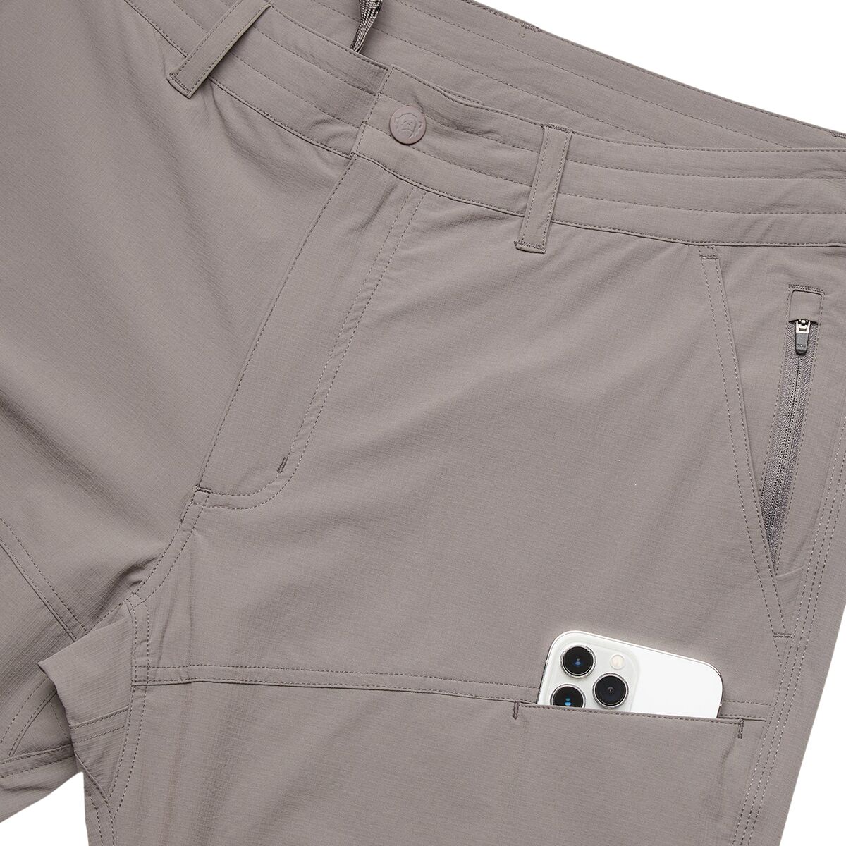 Материал: 85% нейлон, 15% спандекс Покрой: стандартный Стиль: прямой Длина внутреннего шва: 32 дюйма Отверстие для штанин: застежка-резинка на подоле Карманы: 2 для рук (один с маленьким карманом на молнии), 1 для телефона на липучке, 2 эластичных кармана на молнии сзади Талия: шнурок на завязке Вставка в паху: да Деятельность: походы и кемпинг, рыбалка, повседневная