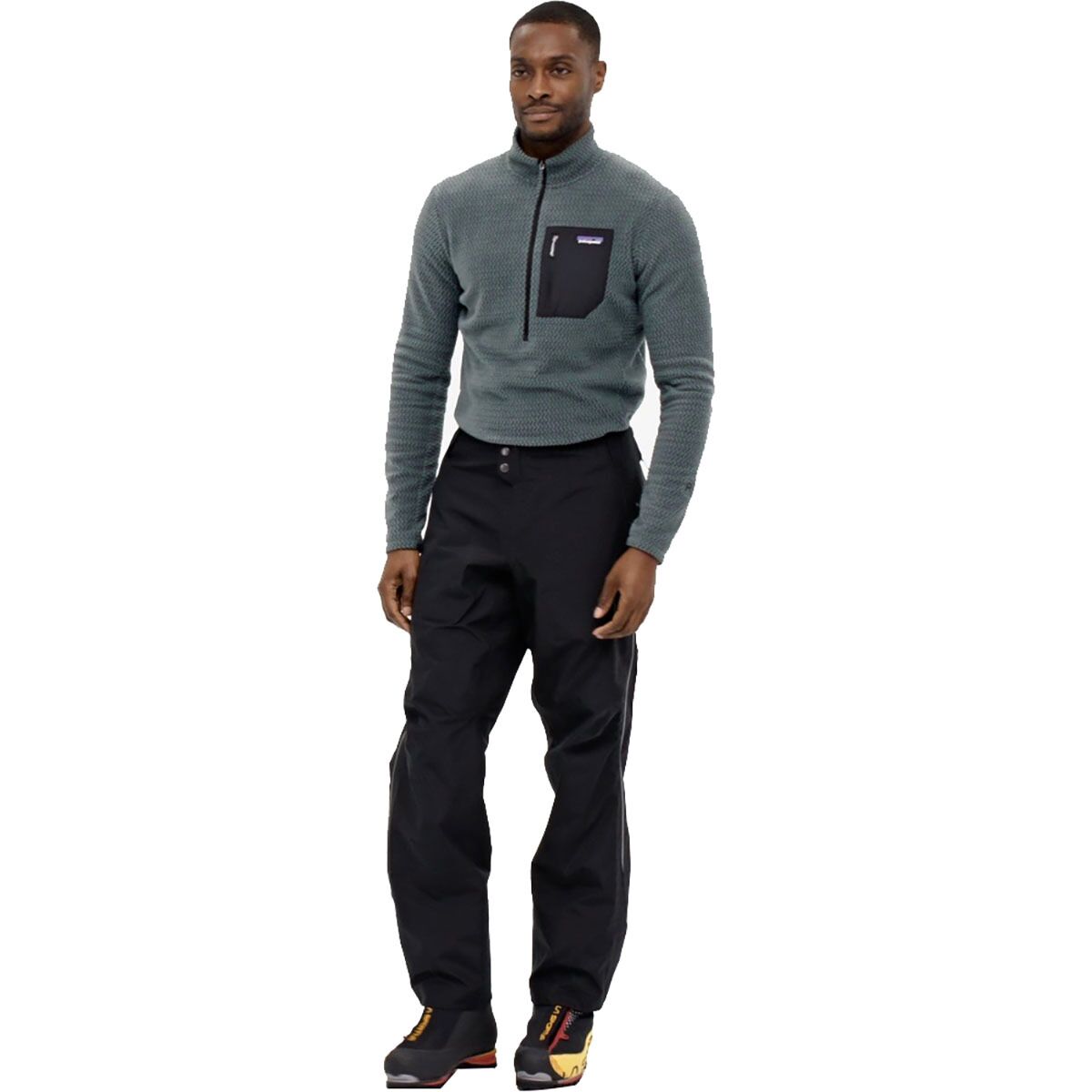 «Эти брюки я надеваю и для внетрассовых лыжных походов, и для бурных альпинистских восхождений. Трёхслойный GORE-TEX защищает от снега и ветра, не перегревая, а боковые молнии обеспечивают быструю смену одежды или вентиляцию. Они разработаны для многослойной экипировки и оснащены специальными функциями для снега».