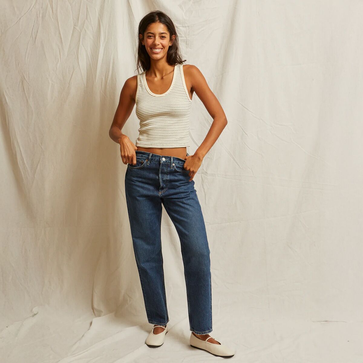 «Майка Blondie - мой фаворит на каждый день и в сочетании с другими нарядами. Мягкая ткань в рубчик из хлопка и спандекса невероятно комфортна и не теряет форму даже после многочисленных стирок. Она облегает, но не слишком плотно, что делает её идеальной как для самостоятельного ношения, так и под фланелевым бельём. Мне нравится её универсальность: я сочетаю её с джинсами для создания непринуждённого образа или надеваю под куртку в прохладную погоду».