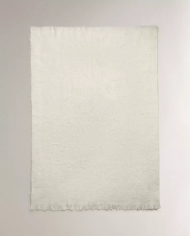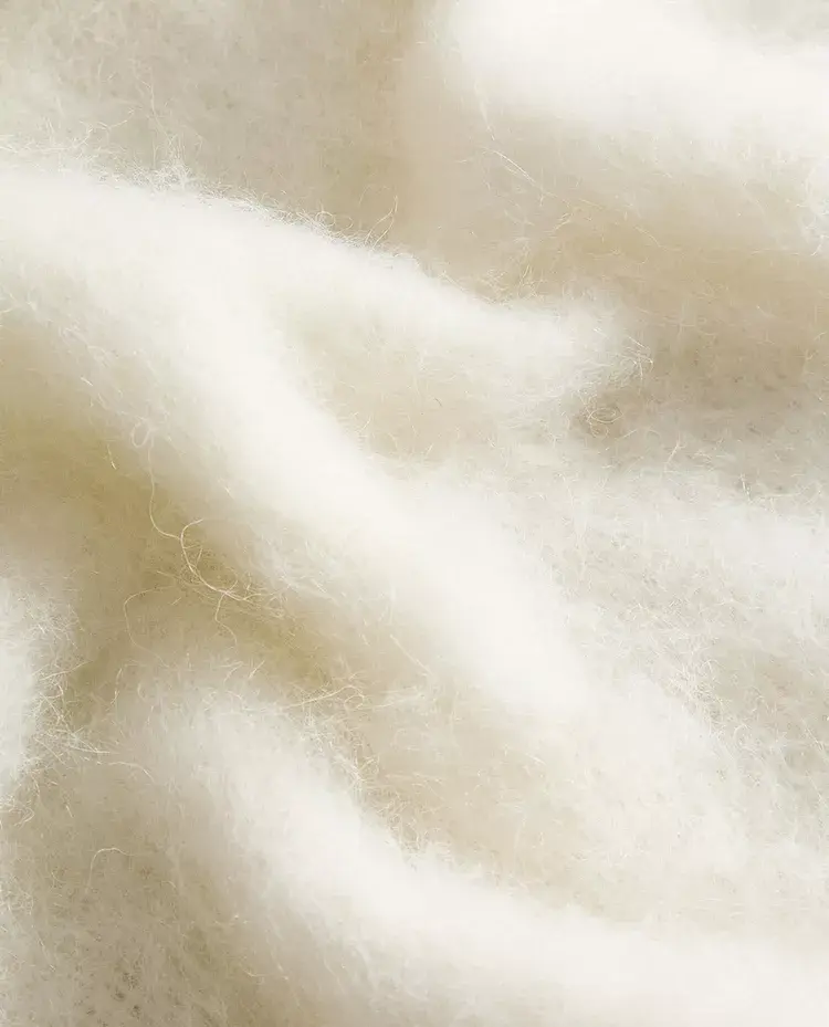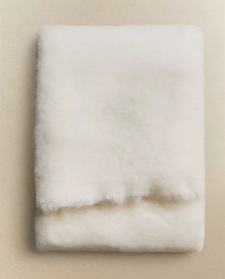 Плед из смесовой шерсти с простым рисунком. Он тёплый, мягкий и лёгкий, что делает его идеальным вариантом для декоративного диванного пледа или для размещения у изножья кровати.