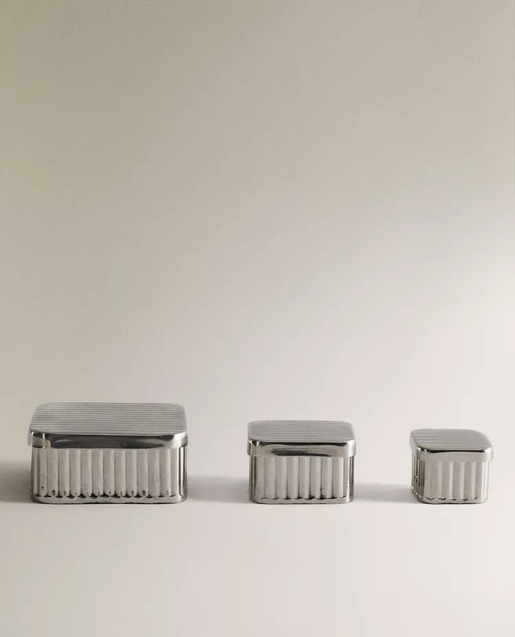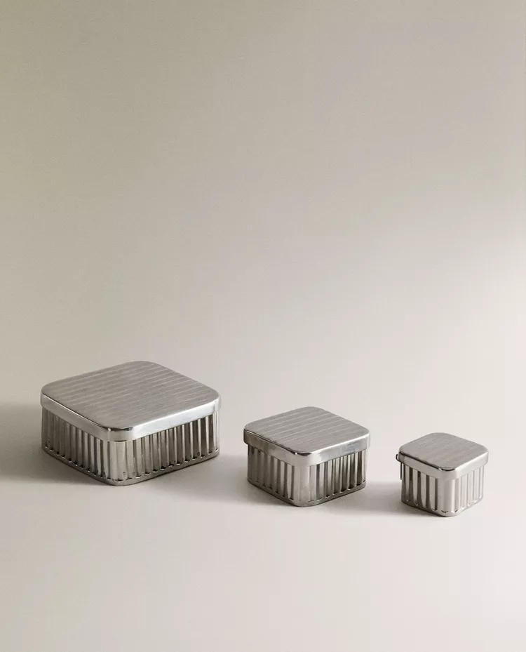 Ящик для хранения из нержавеющей стали с соответствующей крышкой.
