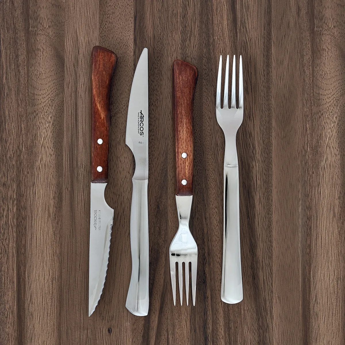 Нож для стейков из нержавеющей стали, идеально подходящий для нарезки мяса. В превосходном качестве Arcos и представлен в собственном футляре.