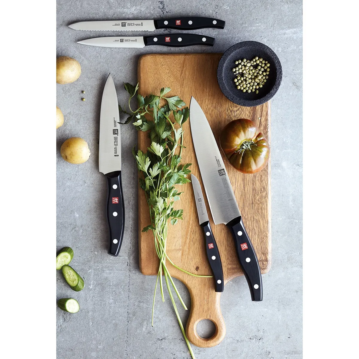 Рекомендации: Все ножи Zwilling J.A Henckels с ручкой из синтетического материала подходят для посудомоечной машины (55°C). Тем не менее, за ними следует заботиться гораздо лучше, мыть их вручную и сушить после мытья. Рекомендуется использовать их на деревянных или синтетических поверхностях.