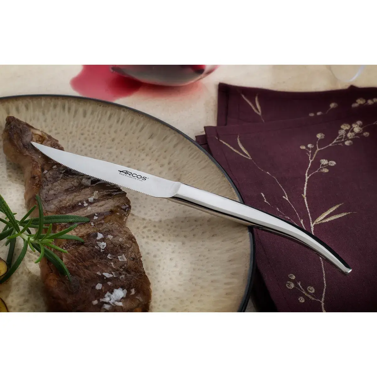 Стейковый нож Navaja от знаменитого испанского бренда Arcos сочетает в себе традиционный дизайн испанского складного ножа и инновационную моноблочную технологию. Цельнометаллическая конструкция обеспечивает исключительную прочность и гигиеничность, а характерный изогнутый клинок идеально подходит для точной нарезки готовых мясных продуктов. Этот нож станет украшением при сервировке стола и отразит ваш безупречный вкус.