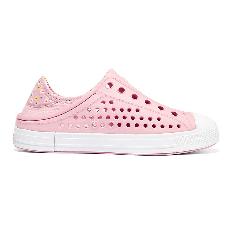 Верх выполнен в однотонном цвете, простой и элегантный; пятка выполнена из дышащей сетчатой ткани, а сочетание нескольких материалов добавляет ощущение многослойности. Два способа надевания - на пятку и надевание - являются уникальными и новаторскими, что делает их более удобными для детей, которые могут носить их самостоятельно в повседневной жизни; материал EVA обладает высокой гидрофобностью и особенно подходит для летней носки.