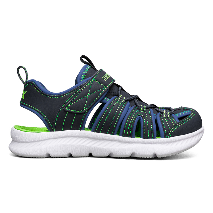 Сандалии для мальчиков SKECHERS BOYS с закрытым носком на липучке: легкая и мягкая усовершенствованная версия подошвы сандалий C-FLEX, многоканавчатый рисунок на подошве не скользит, износостойкий и легко гнется; верх изготовлен из искусственного материала для усиления формы обуви и лучшей защиты нежных детских ножек; дизайн в стиле рыбака подходит для летних и дождливых дней и прост в уходе; цельный метод надевания с помощью липучки позволяет детям удобно надевать обувь самостоятельно.