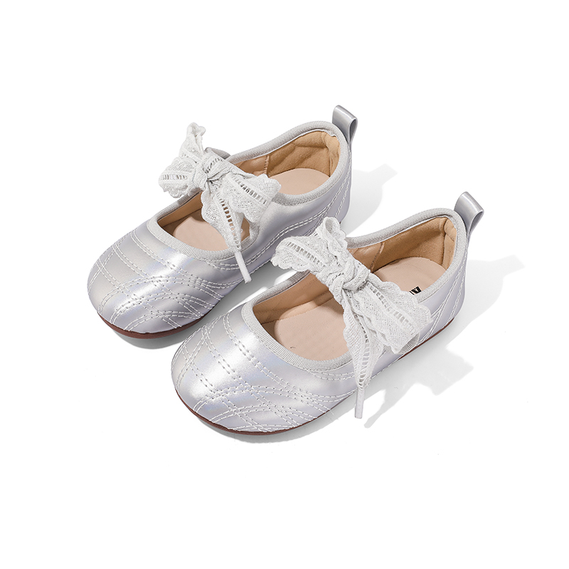 ABC DOUKIDS Детские кожаные туфли для детей ABCdoukids, серебряный