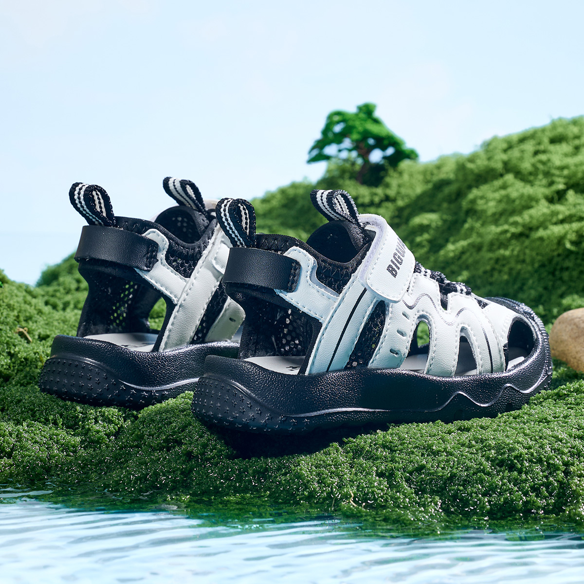 Противоскользящие и дышащие детские сандалии BIG WASP, черный/белый