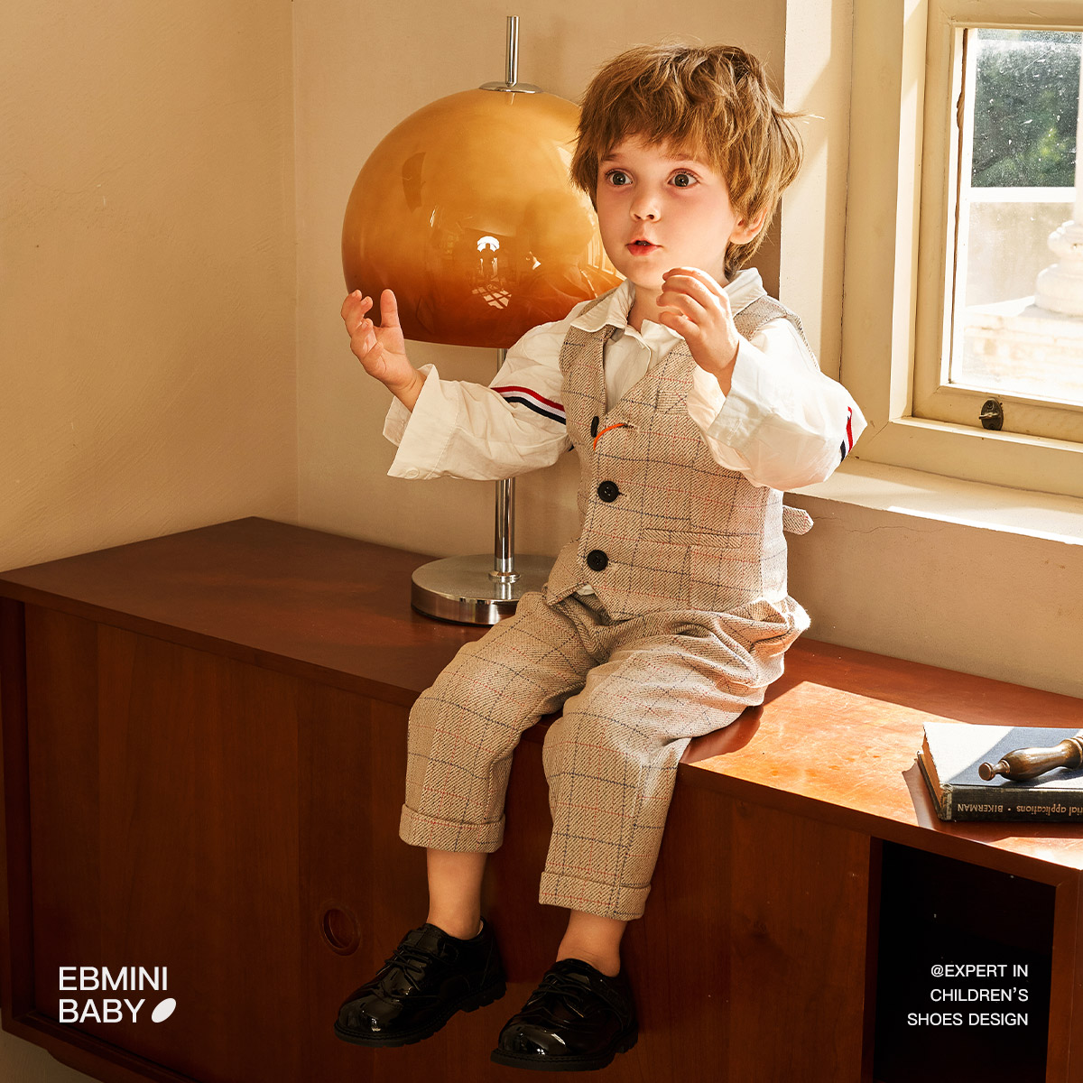 Детская кожаная обувь для дошкольников EBMINI, черный