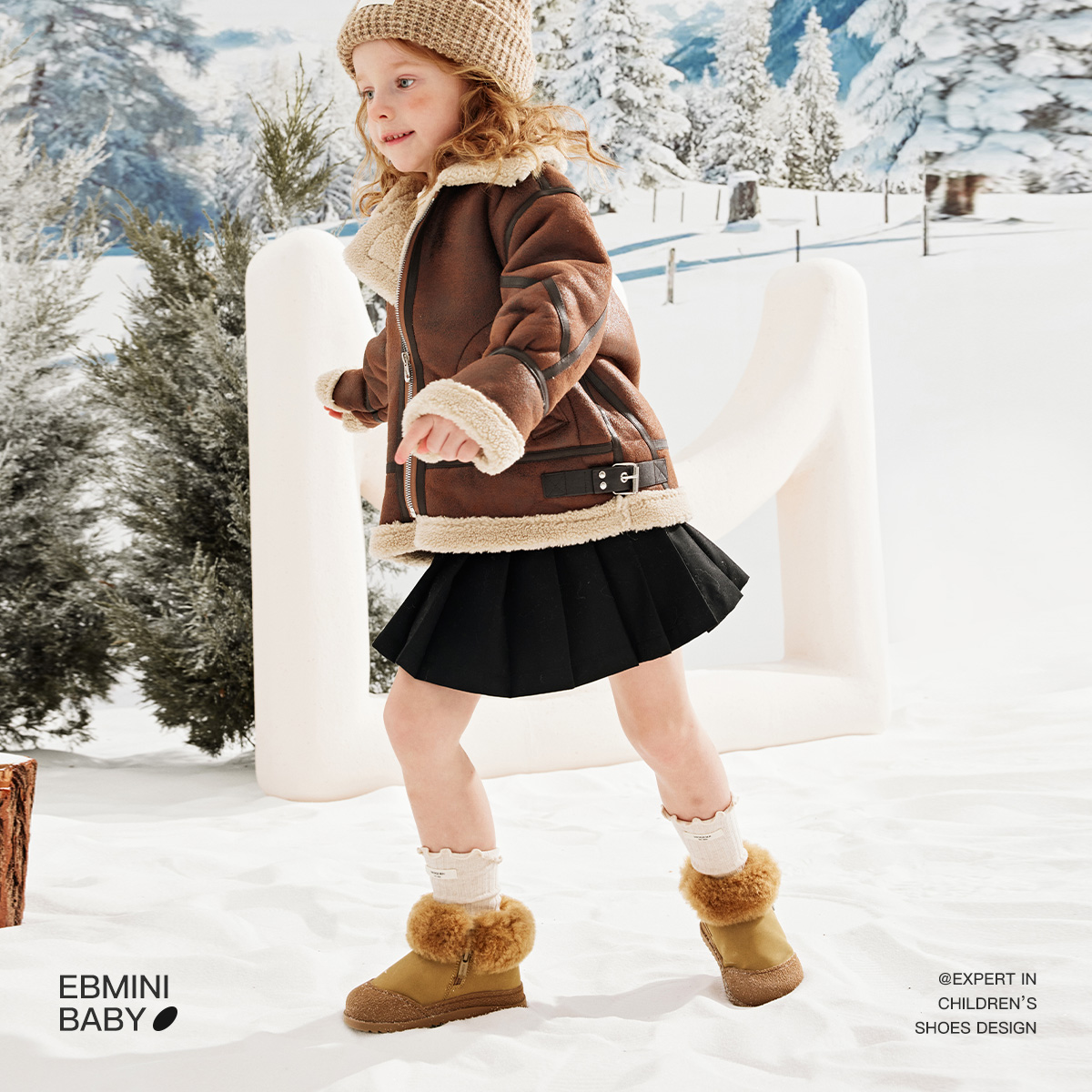 Детские утепленные ботинки для дошкольников EBMINI, коричневый