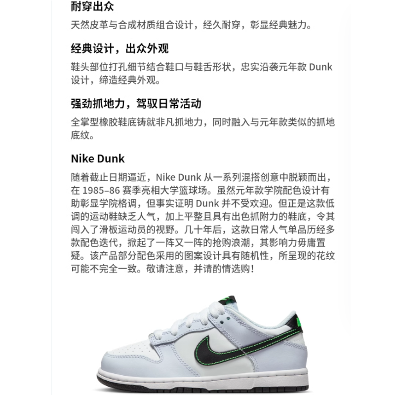 Nike Детские кроссовки Dunk Low Football Grey Green Strike