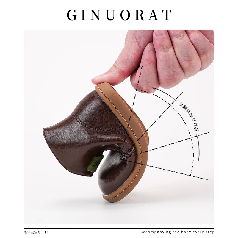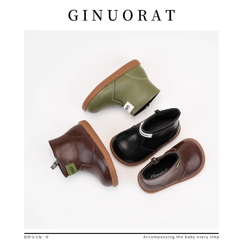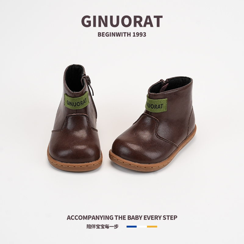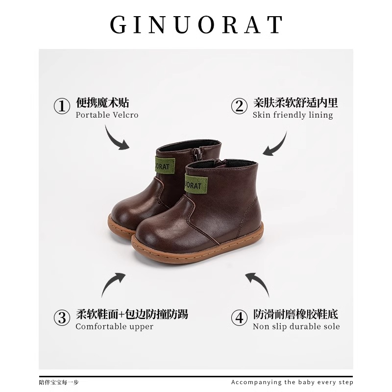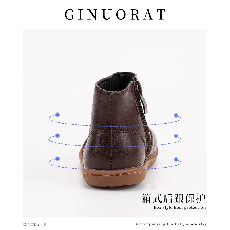 Детские кожаные ботинки для дошкольников QINUOSHU, Coffee