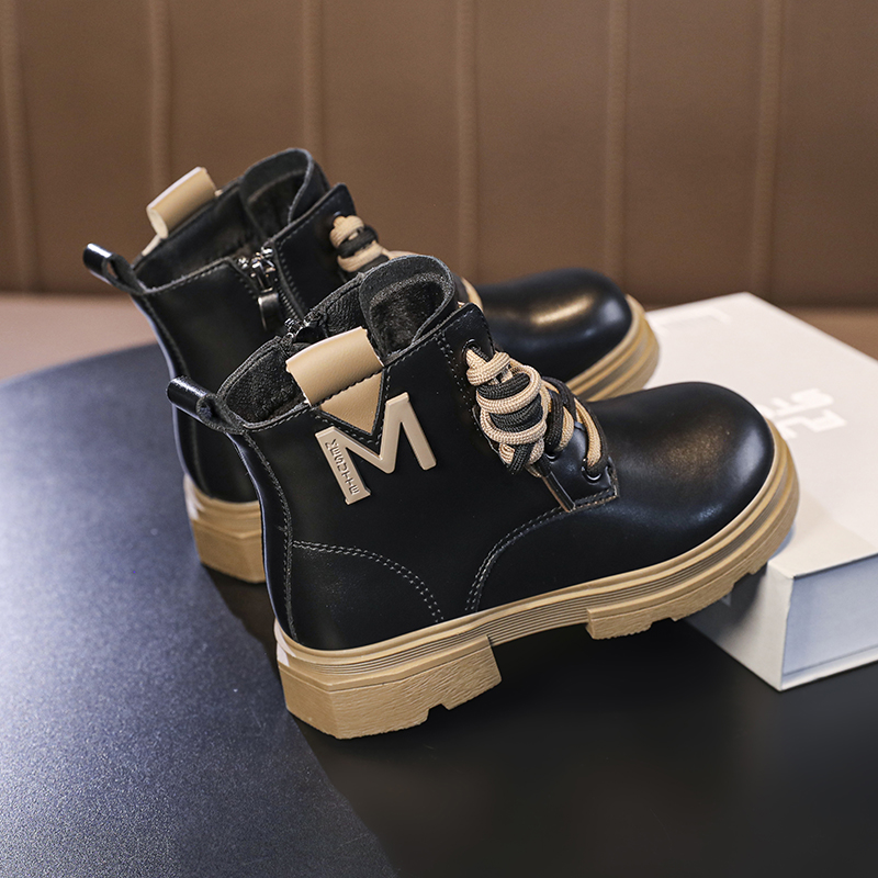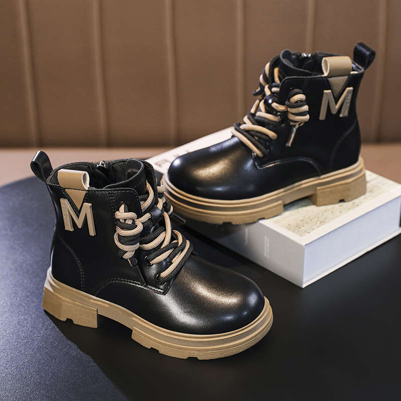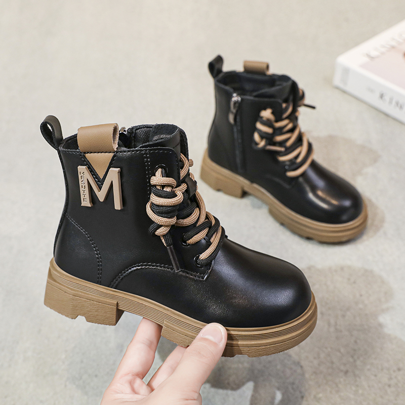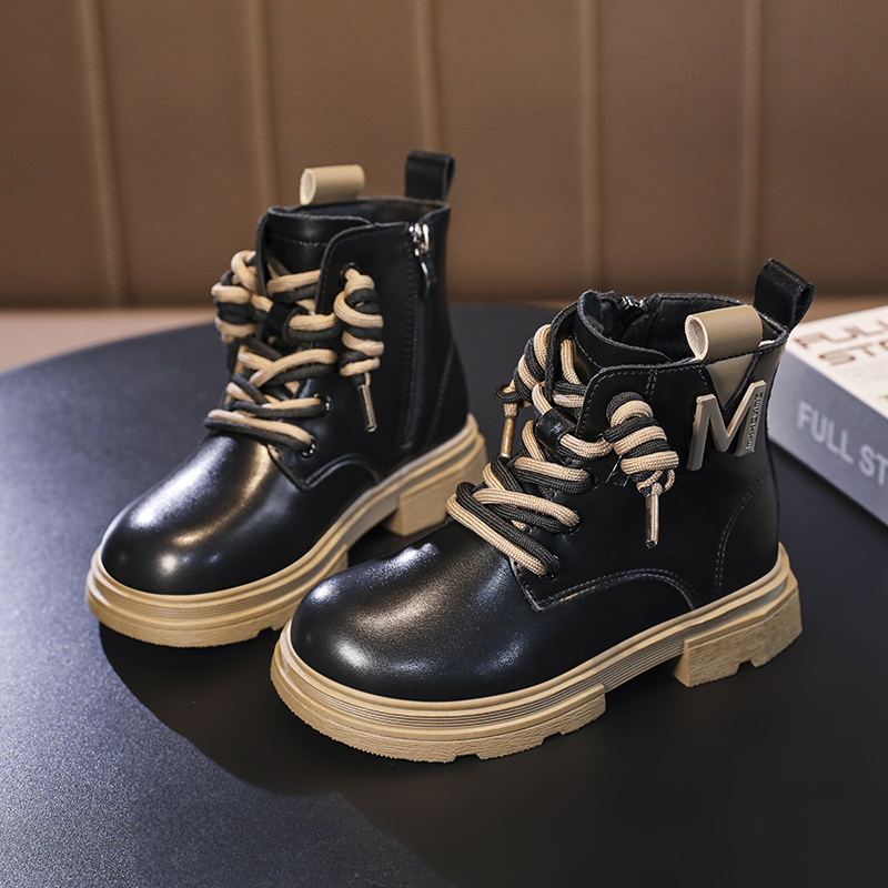 Детские кожаные ботинки для детей TONYBEAR, черный/хаки