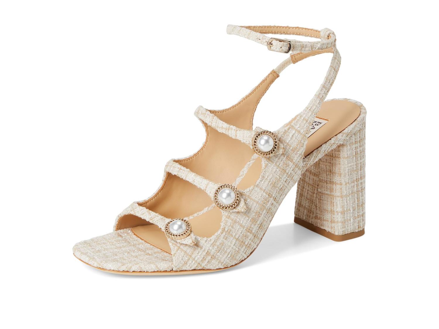• Туфли Badgley Mischka Vella с верхом из твида, украшенные жемчугом, сочетают элегантность и игривое очарование. Регулируемый ремешок на щиколотке с пряжкой и сетчатый силуэт обеспечивают удобную посадку, а открытый квадратный носок добавляет очаровательного шарма.