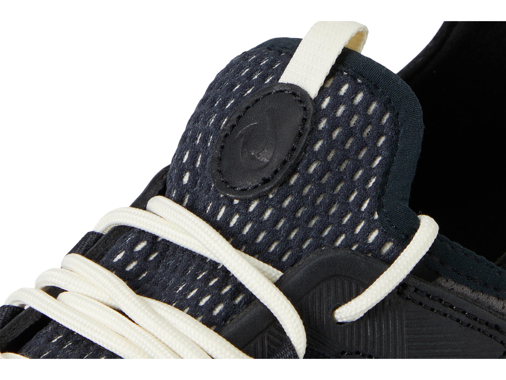• Тисненый масляный рисунок капа на кожаном пятке и подставках для шнурков, тисненые масляным маслом логотипы на нашивке подъема и на стельке, а также четвертные лямки, вдохновленные креплениями аутригеров каноэ.