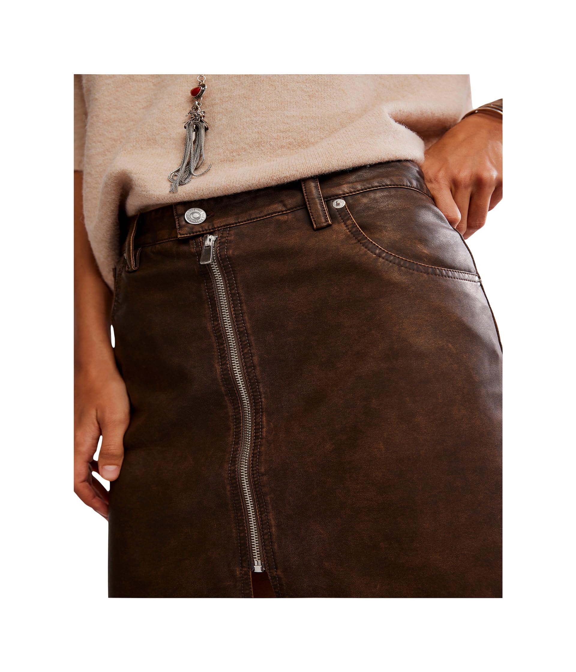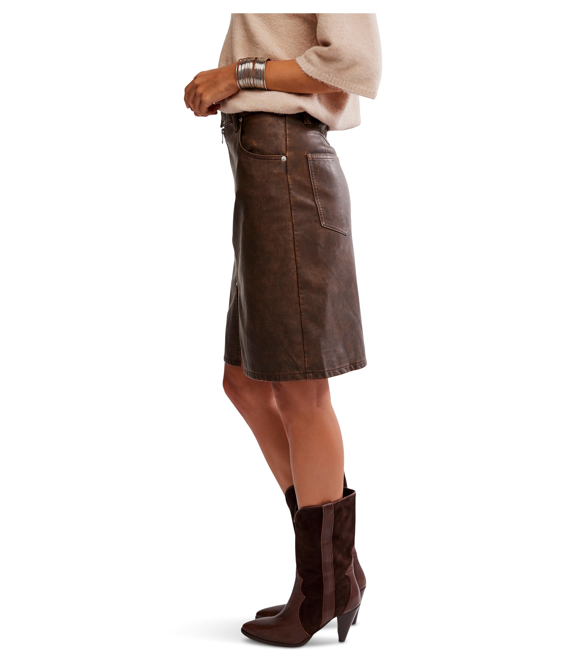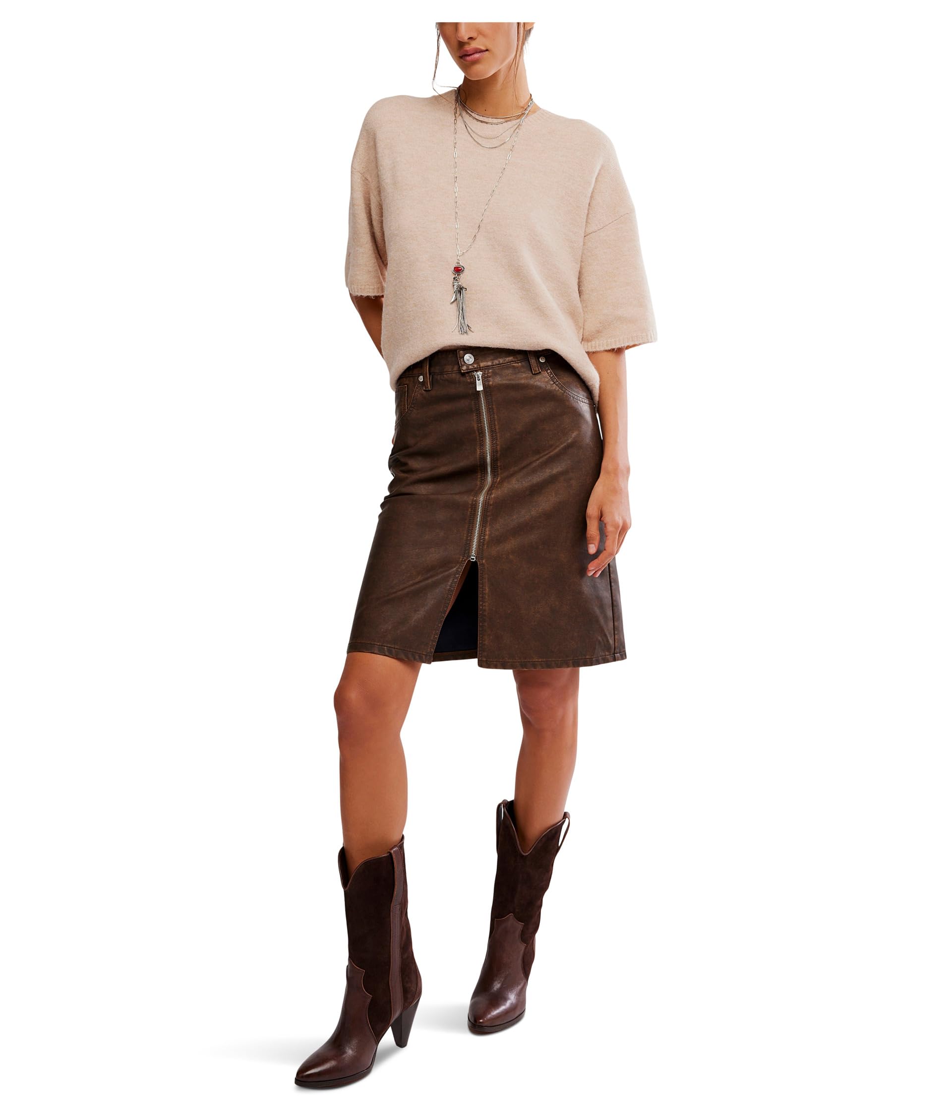 • Юбка миди Free People Sycamore Vegan, изящная и с лёгким оттенком элегантности, выполнена из мягкой веганской кожи и имеет классический прямой крой с разрезом по низу для дополнительного объёма. Эта эффектная юбка миди со средней посадкой и удлинённой застёжкой на молнии дополнена застёжкой на пуговицы спереди и шлёвками для ремня. Разрез спереди обеспечивает большую свободу движений. Выразите свой стиль в этой кожаной юбке.