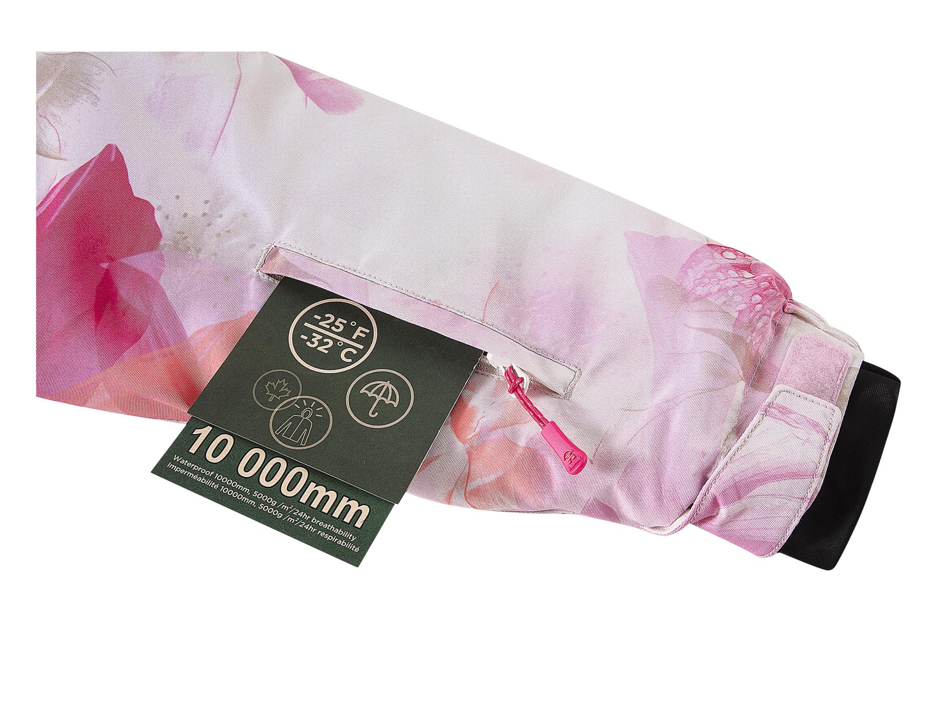 • Карман для ски-пасса на молнии на рукаве.