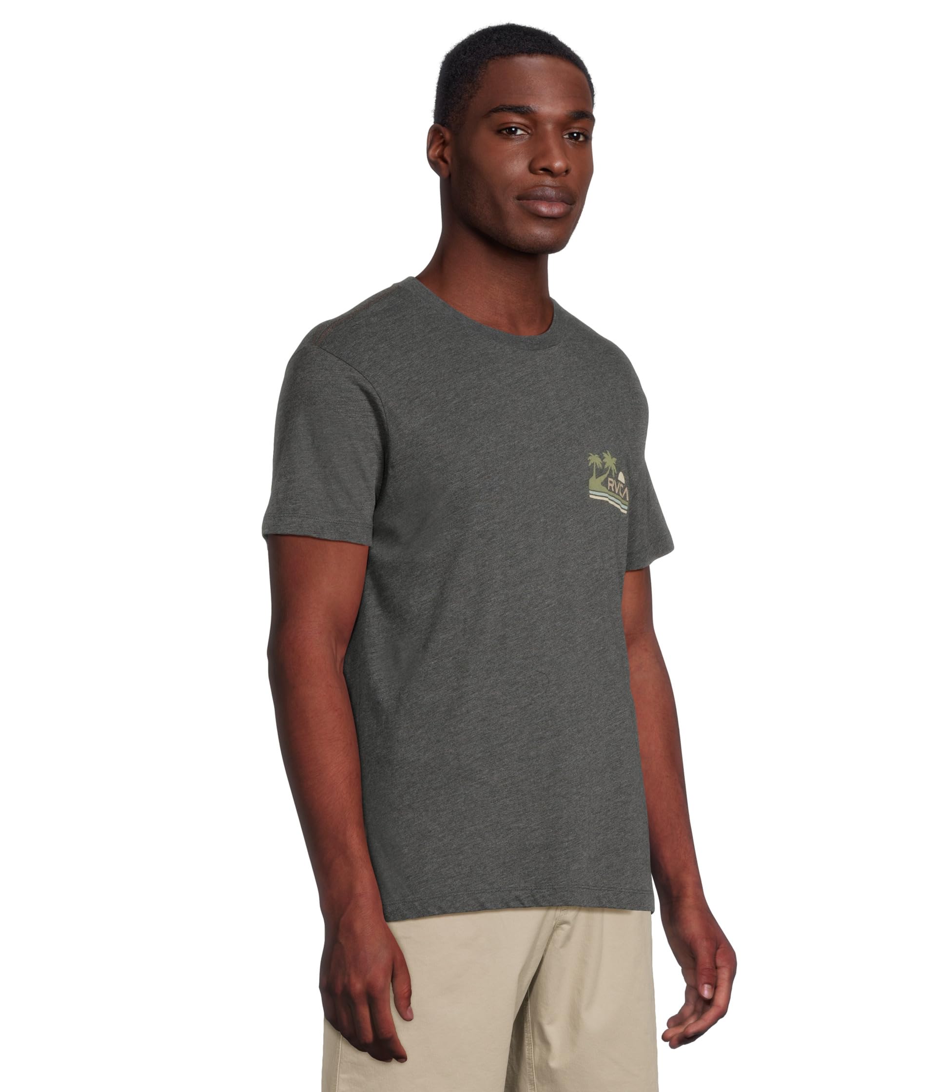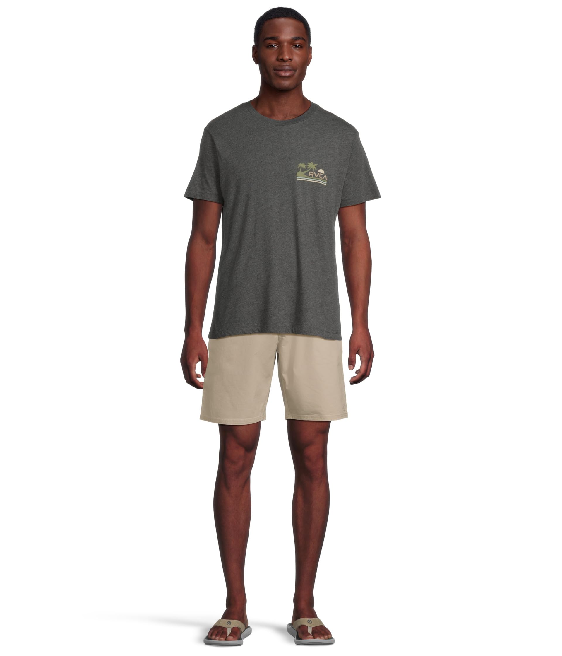 • RVCA Palm Trail Short Sleeve — футболка из смеси хлопка и полиэстера с винтажной стиркой и рисунком спереди и сзади. Облегающий крой и круглый вырез горловины создают непринужденный образ, а короткие рукава обеспечивают комфорт.