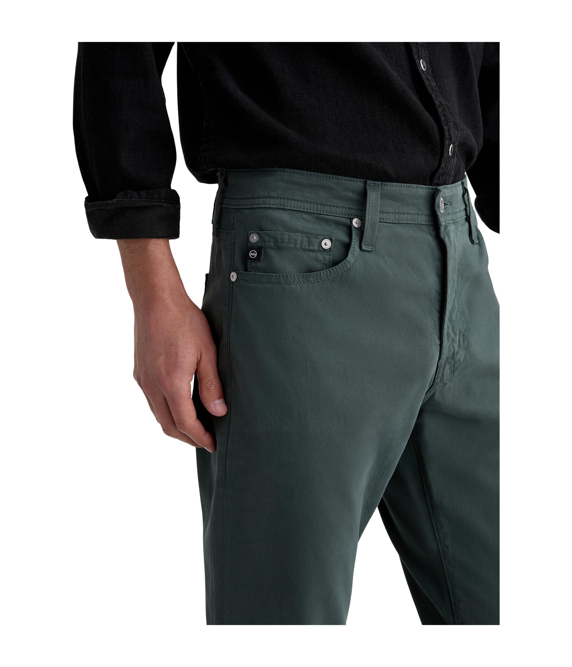 • Брюки AG Jeans Everett Slim Straight имеют облегающий прямой крой с удобной средней посадкой, свободный от бедра до колена и слегка сужающийся к низу брючины. Изготовлены из ткани плотностью 8,4 унции. Эти джинсы из итальянской замши и эластичного атласа, мягкие и гладкие на ощупь, идеально подходят как для повседневной носки, так и для вечерних прогулок.