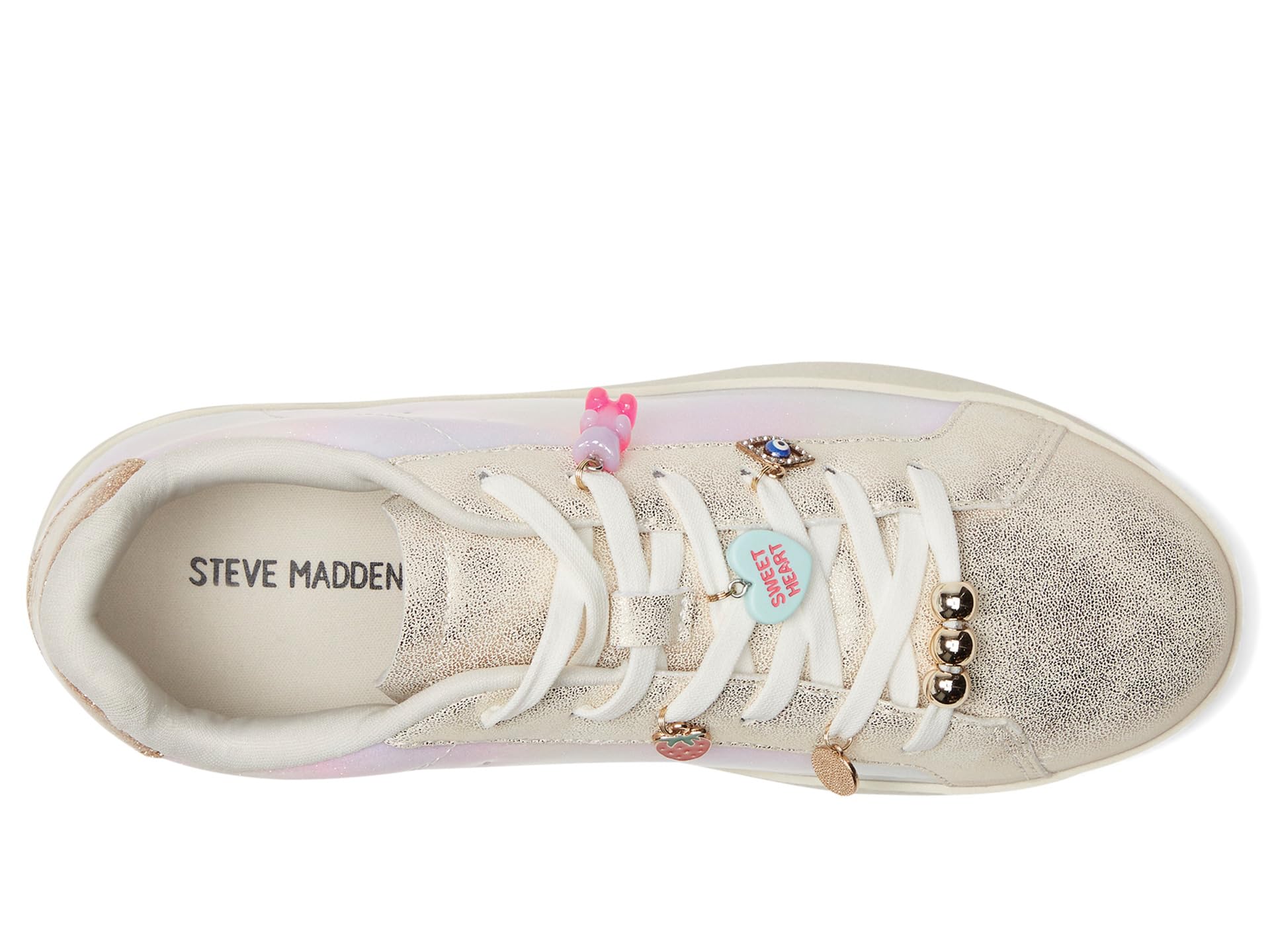 • Блестящие акценты придают этим низким кроссовкам Steve Madden Kids Nilsa детское очарование. Мягкая стелька обеспечивает комфорт в течение всего дня. Верх: синтетический, подкладка: текстильная, подошва: синтетическая.