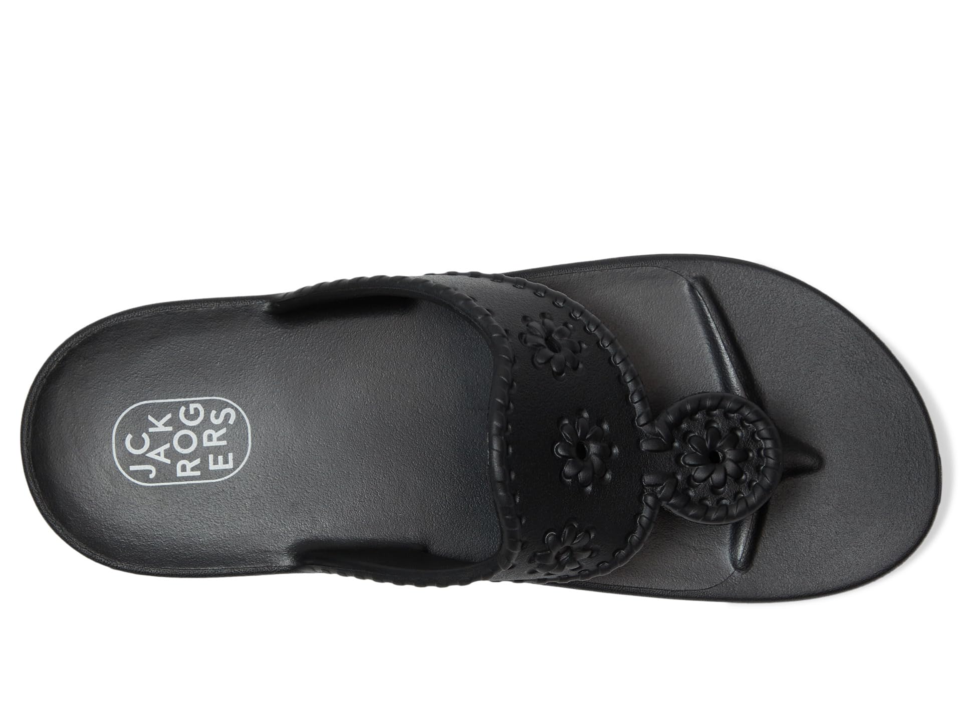 • Кроссовки Jack Rogers Jacks Eva отличаются лёгкой водонепроницаемой конструкцией из этиленвинилацетата. Они плотно облегают ногу и имеют открытый круглый носок. Кроме того, их классический вид определяется фирменной обметочной строчкой и деталями в форме ронделей.