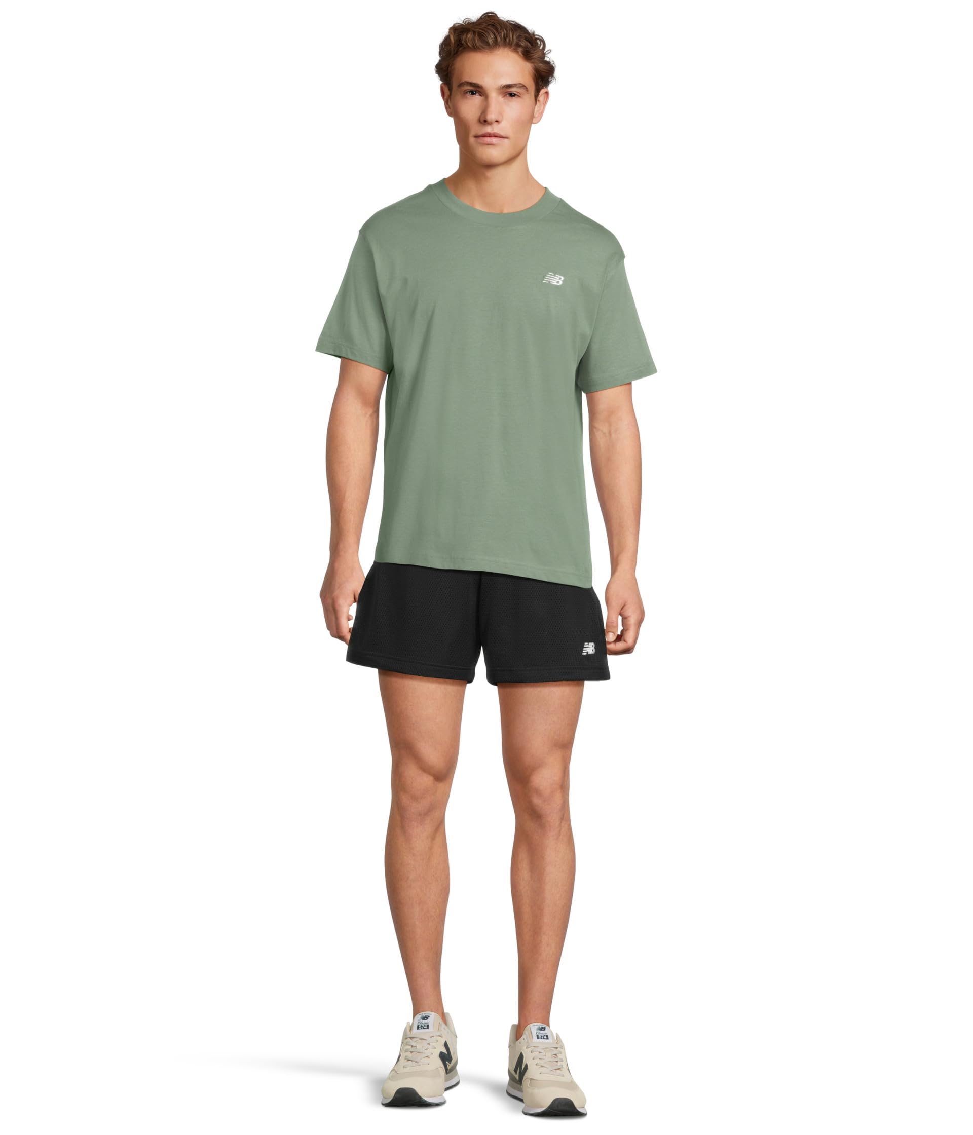 • Подчеркните спортивный стиль и добавьте комфорта во время занятий фитнесом в сетчатых шортах New Balance Sport Essentials Mesh Shorts 5". Эти шорты легко надеваются, имеют эластичный пояс с внешней завязкой на шнурке, два кармана для рук спереди, легкую сетчатую подкладку и вышитый логотип Flying NB. Длина выше колена.