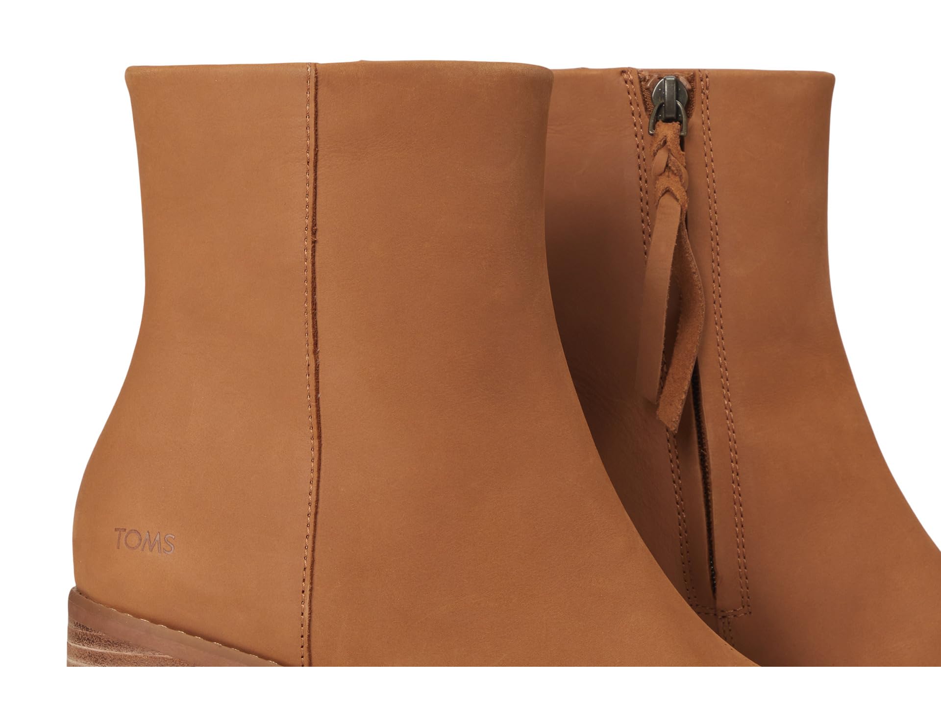 • Пусть каждый ваш шаг станет более уверенным в удобных ботильонах TOMS Evelyn. Эта пара с миндалевидным носком имеет кожаный верх, застежку-молнию сбоку и наборный каблук.