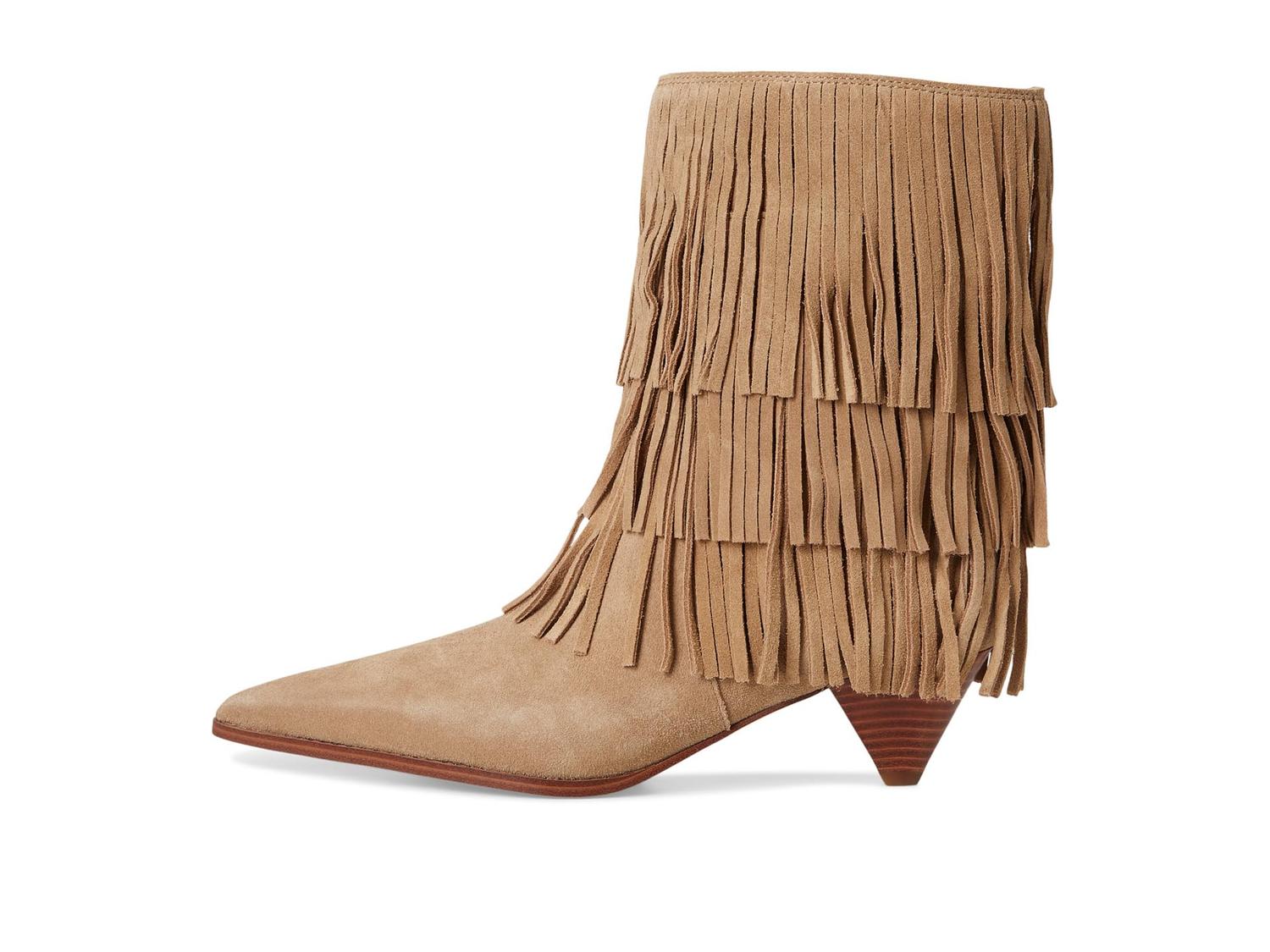 • Ботинки на каблуке MICHAEL Michael Kors Jayla отличаются высотой до щиколотки, сочетающей энергию высокой моды с богемным стилем. Они отличаются острым носком, многослойным конусообразным каблуком и многоуровневой бахромой, которая создает динамичный эффект при каждом шаге. Без застежки-липучки легко надевать, а гладкая замшевая отделка добавляет нотку роскоши.