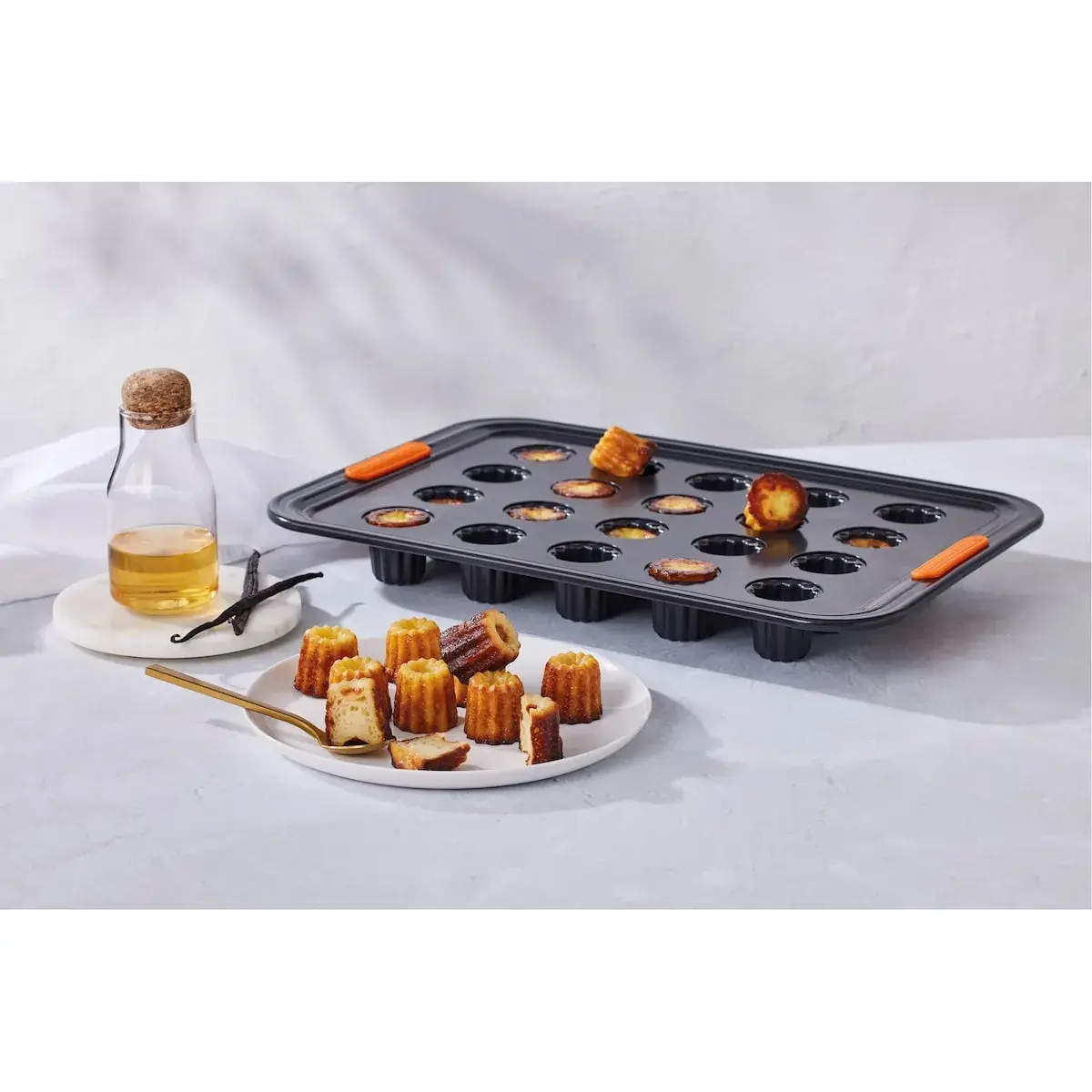 Созданная для приготовления этой специальности из французского региона Бордо, эта антипригарная форма позволяет готовить канеле с невероятно воздушной текстурой внутри и восхитительно хрустящей корочкой снаружи.