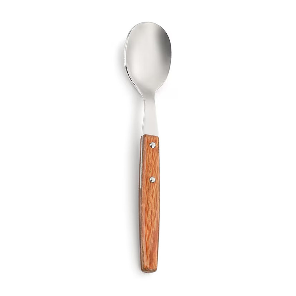 Кофейная ложка из серии Forest марки Arcos. Она выполнена из нержавеющей стали и имеет деревянную ручку, что придаст вашему столу естественный и rustic вид.