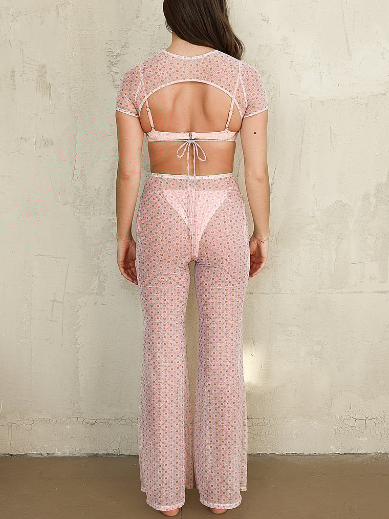 Эти струящиеся сетчатые трусики с эластичным поясом и расклешенными штанинами с принтом по всей поверхности станут идеальным дополнением к вашему любимому купальнику.