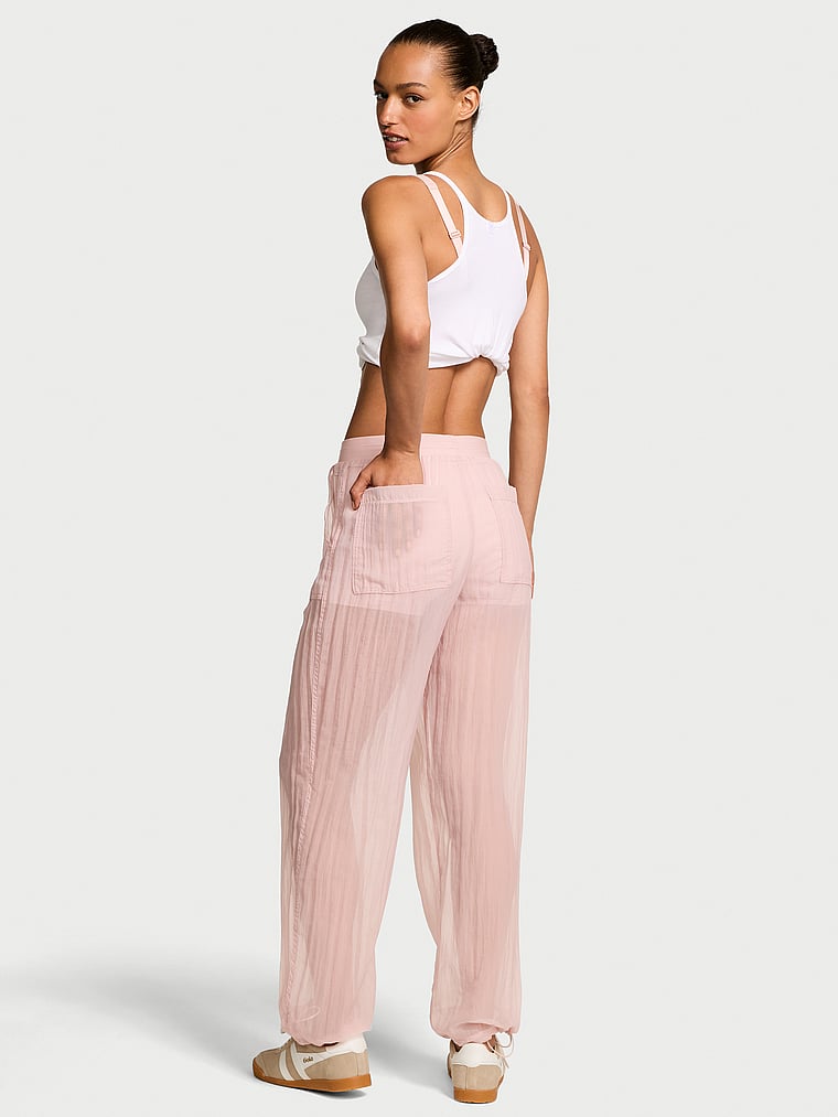 Возьмите на вооружение тренд на прозрачные модели, но сделайте его более спортивным. Эти модные широкие брюки выполнены из легкой полупрозрачной ткани с эластичным поясом и удобными карманами спереди и сзади. Вшитые шорты обеспечивают идеальную защиту и комфорт.