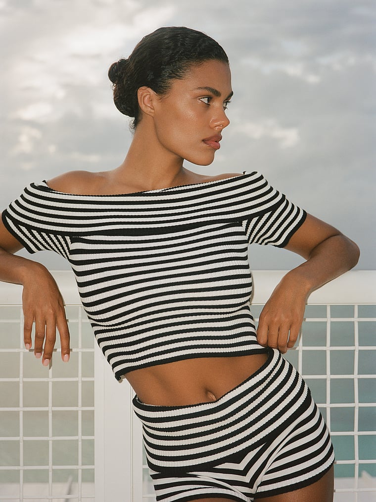 Этот трикотажный топ без бретелек, выполненный из невероятно мягкого облачного трикотажа, имеет двухслойный отворот на груди, поэтому его можно носить как на плечах, так и без них.