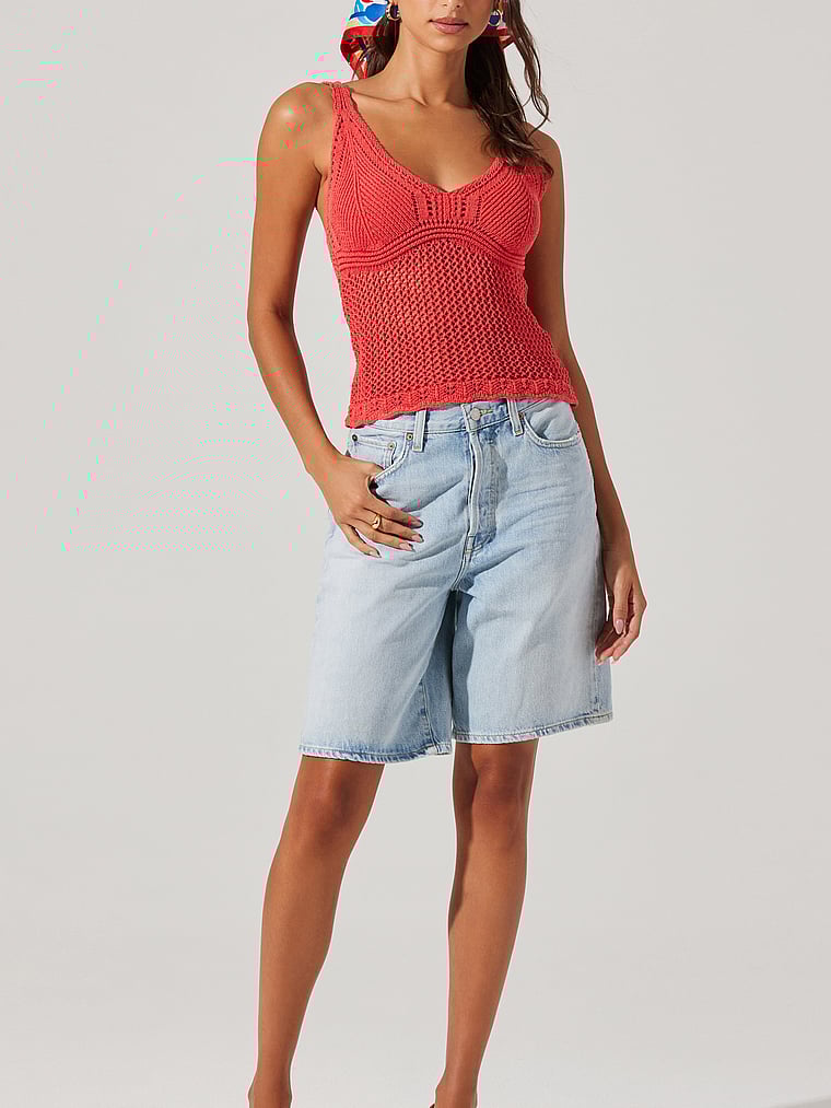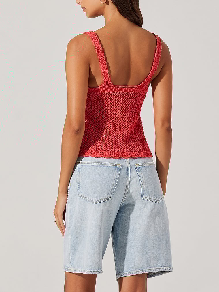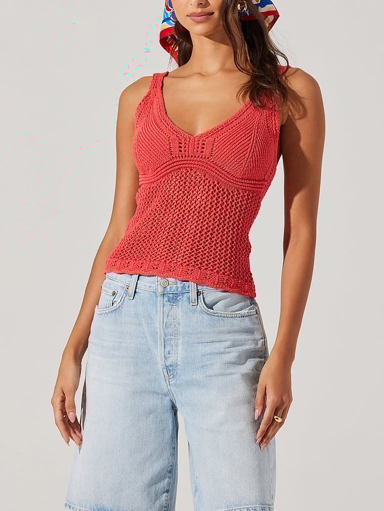 Эта майка, связанная крючком из высокоэластичного хлопка, идеально подходит для прогулок по набережной. Она дополнена привлекательным V-образным вырезом и очаровательной фестончатой отделкой. Носите ее поверх бикини или с любимыми короткими шортами для создания непринужденного летнего образа.