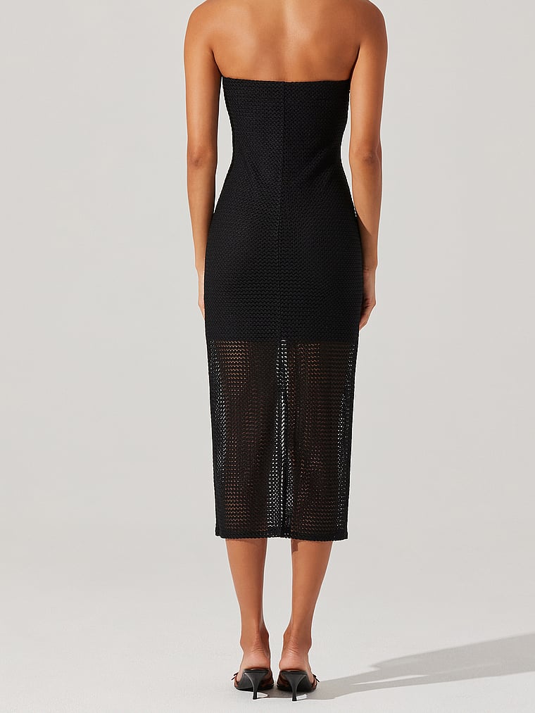 Воплощение летнего гламура. Вырез на груди с отделкой бисером придает изысканность этому облегающему платью с текстурированным верхним слоем из ажурной вязки. Дополните его каблуками или сандалиями (и загорелой кожей), чтобы создать идеальный образ для ужина на пляже.
