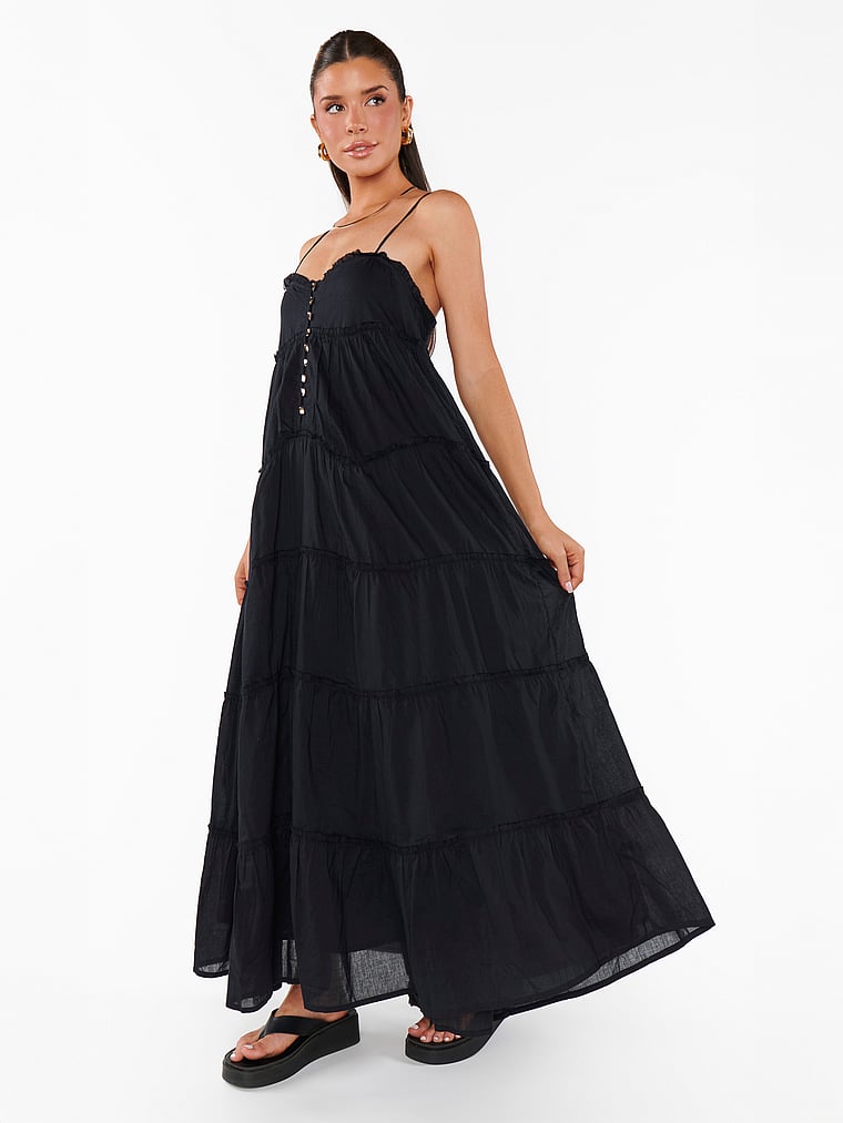 Функциональное и в то же время женственное, это великолепное платье миди идеально подходит для стиля бохо благодаря вырезу сердечком и красивым ярусам.
