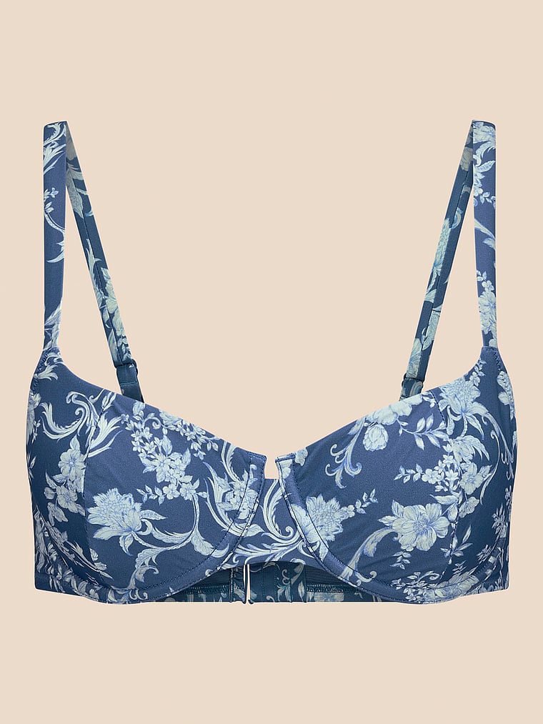 Этот бикини-топ, подчеркивающий достоинства фигуры, имеет чашечки балконет, поддерживающие косточки и регулируемые бретельки для идеальной посадки.