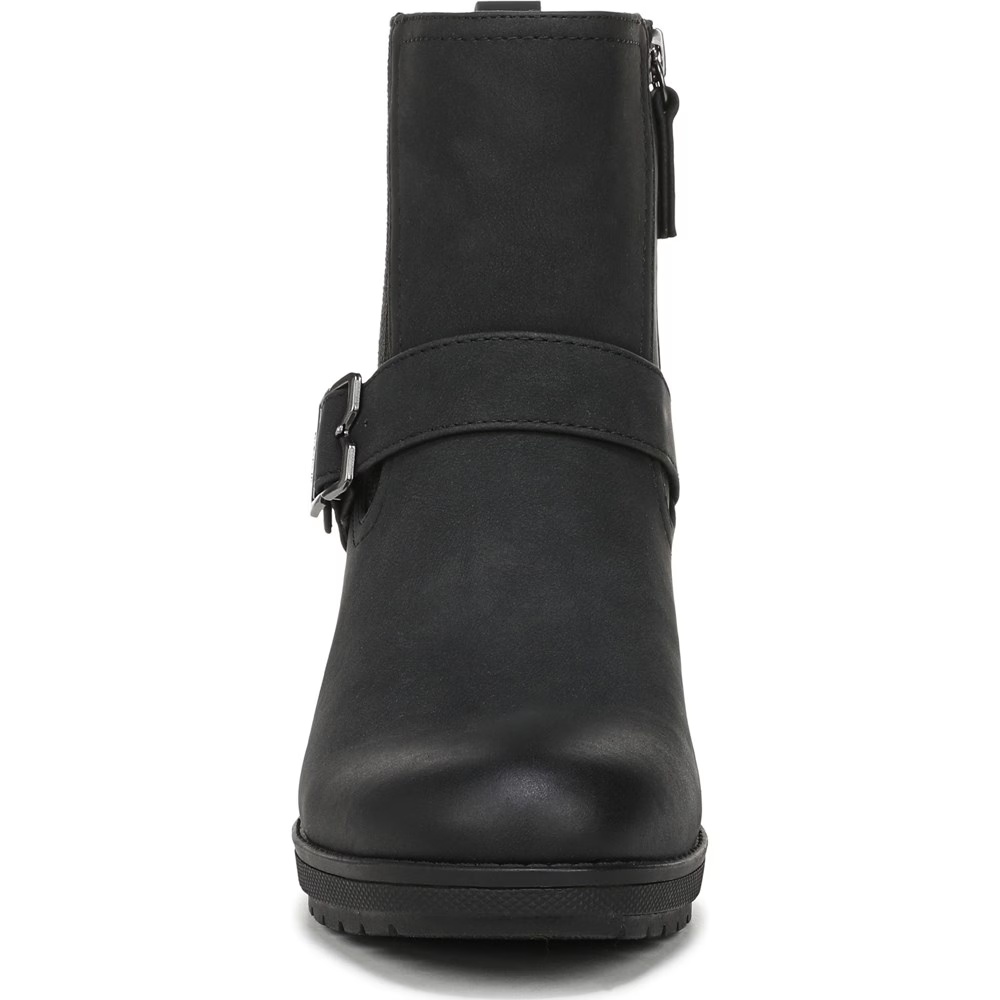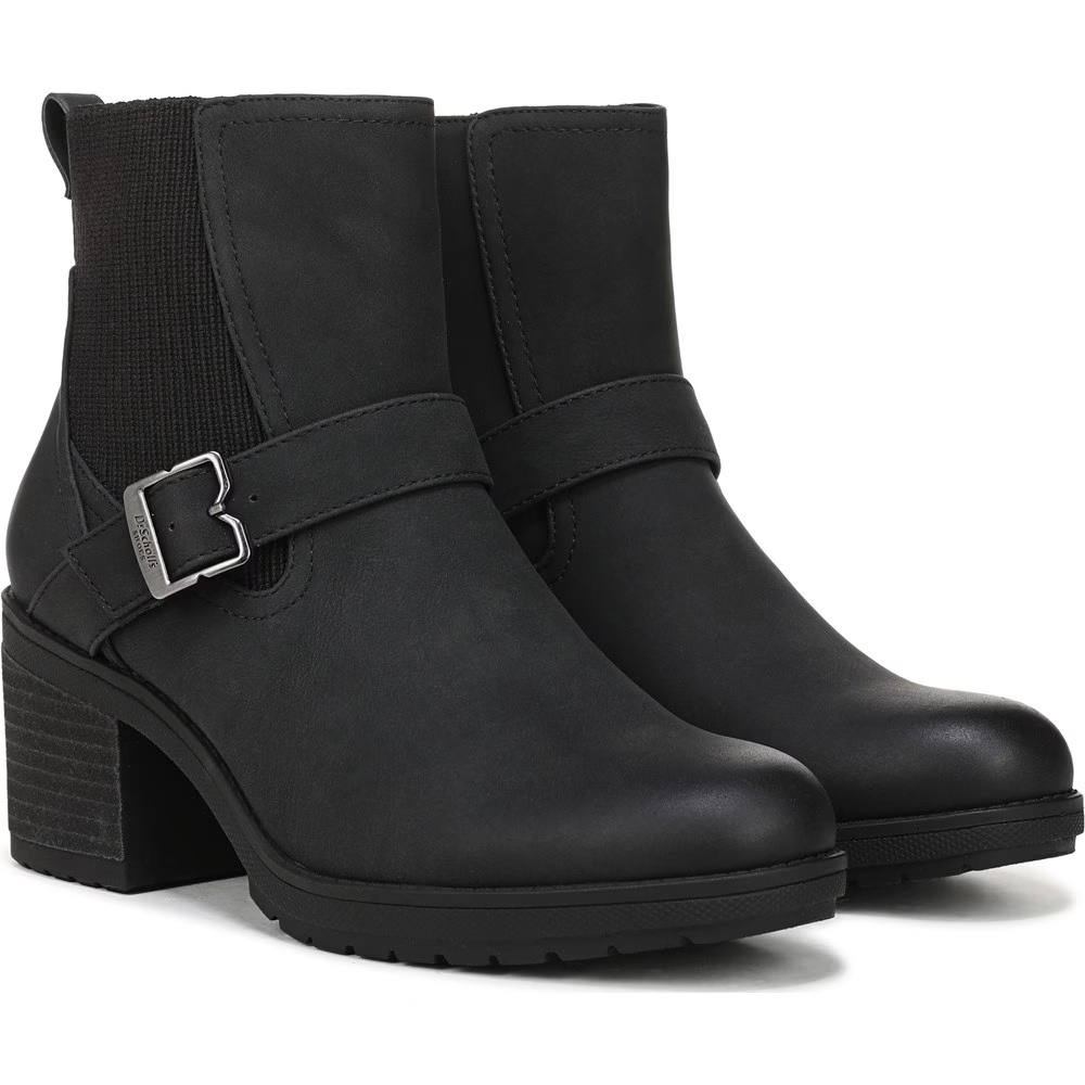 СТИЛЬ: Женские ботильоны с круглым носком, эластичной вставкой в стиле «Челси», ремешком с культовой пряжкой, петлей сзади и наборным каблуком высотой 2 3/4 дюйма с рифленой подошвой из термопластичной резины.