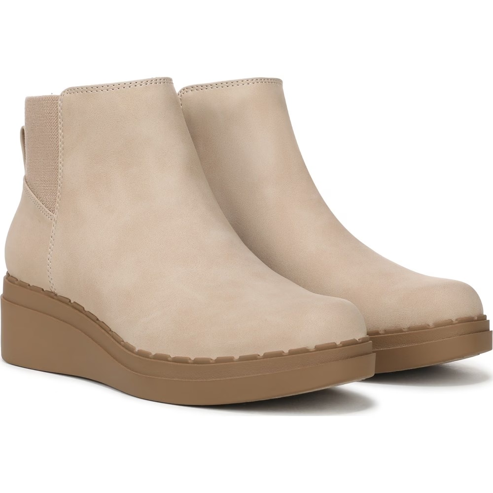 В этих удобных ботильонах на танкетке легко быть в тренде. Верх из микрозамши с круглым носком, внутренней молнией, язычком сзади и эластичной вставкой из клиновидной ткани для удобной посадки.