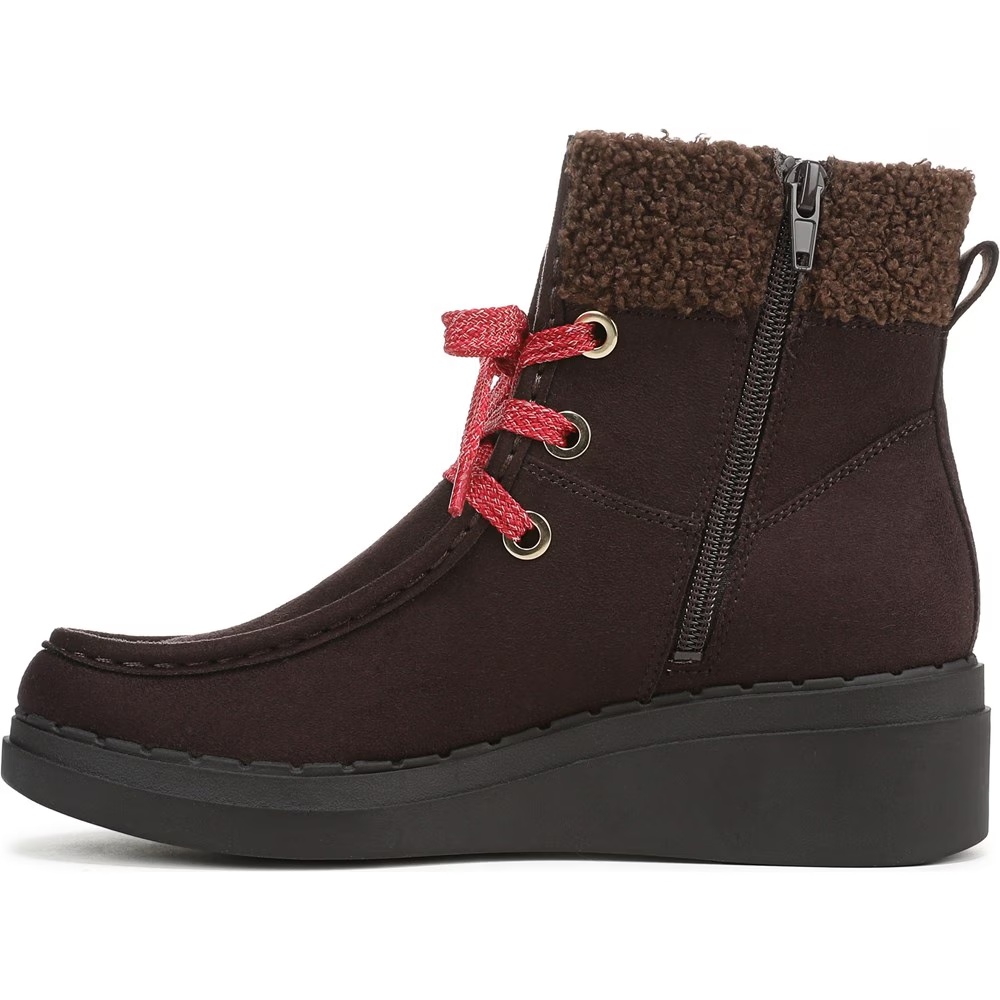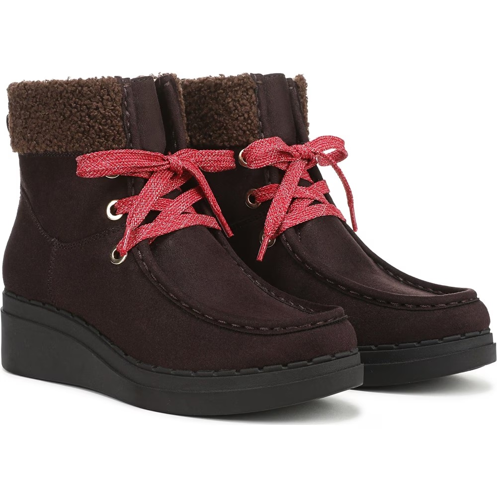 В этих модных ботильонах на танкетке с эффектными деталями вы всегда будете чувствовать себя комфортно. Верх из микрозамши с круглым носком, внутренней молнией, петлей сзади, декоративными шнурками и уютным воротником из искусственной овчины.