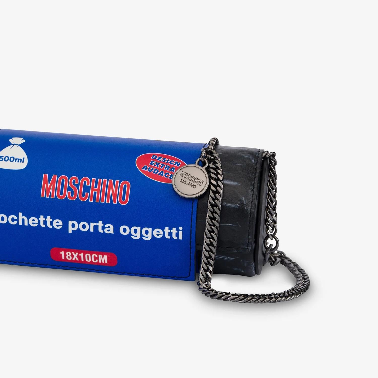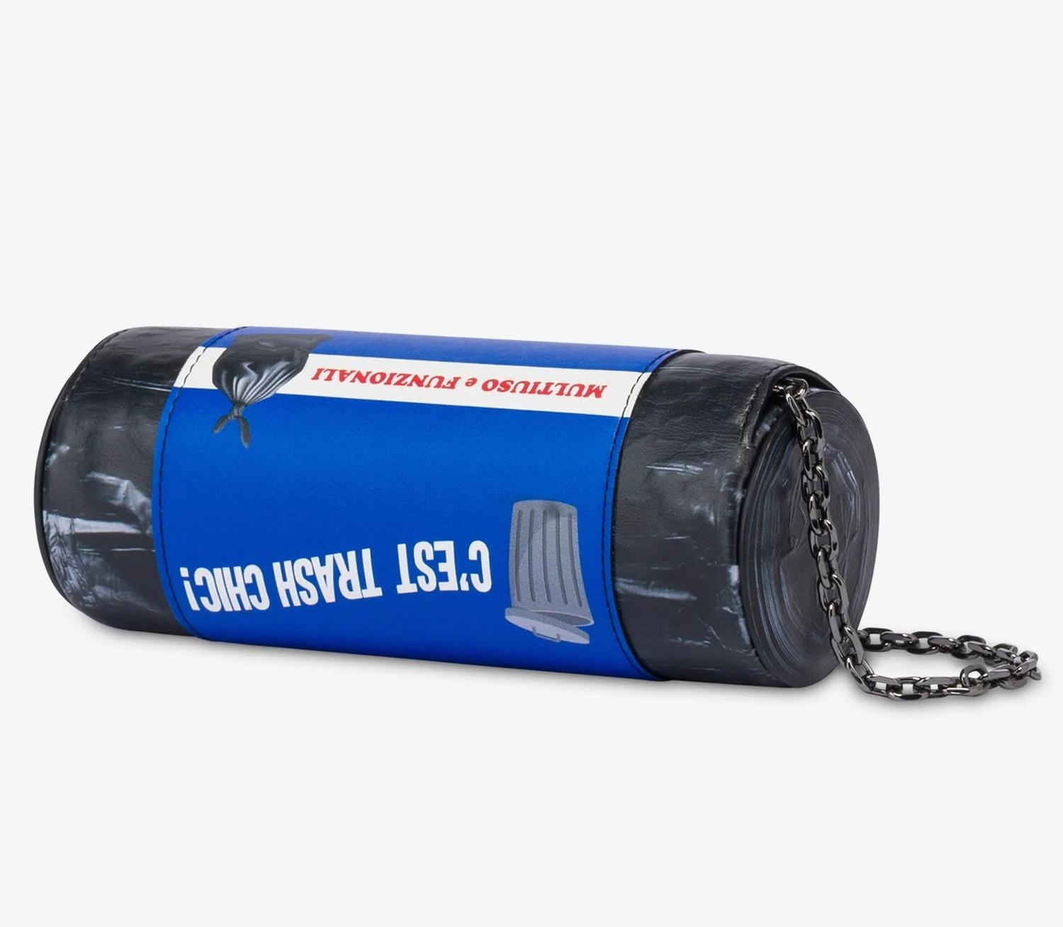 В коллекции осень-зима 2025 представлен клатч с дизайном, вдохновленным рулоном мусорных пакетов. Внутри сумка отделана подкладкой, а высокочастотные детали создают более реалистичный эффект. Плечевой ремень выполнен из металлических цепочек.