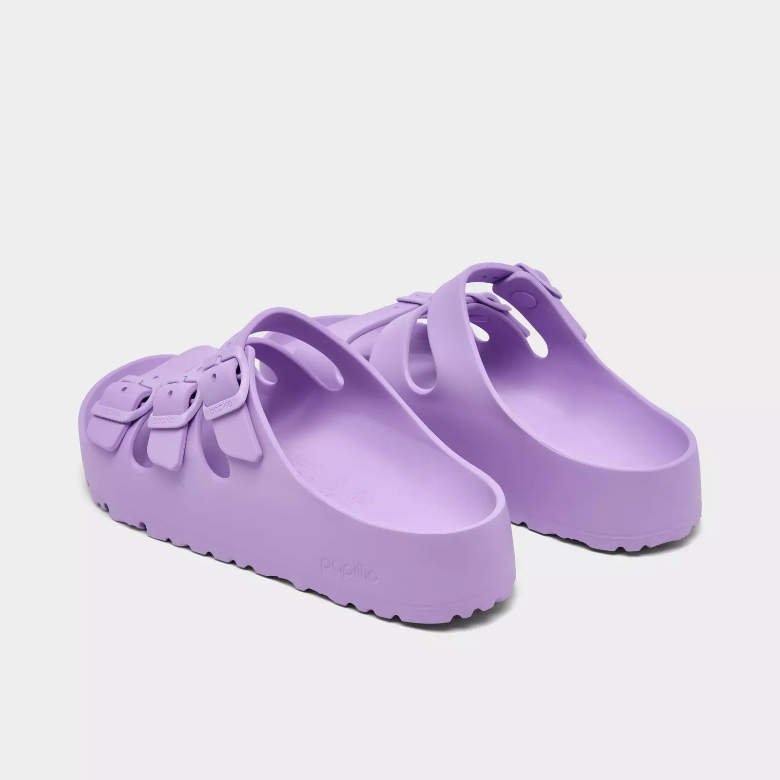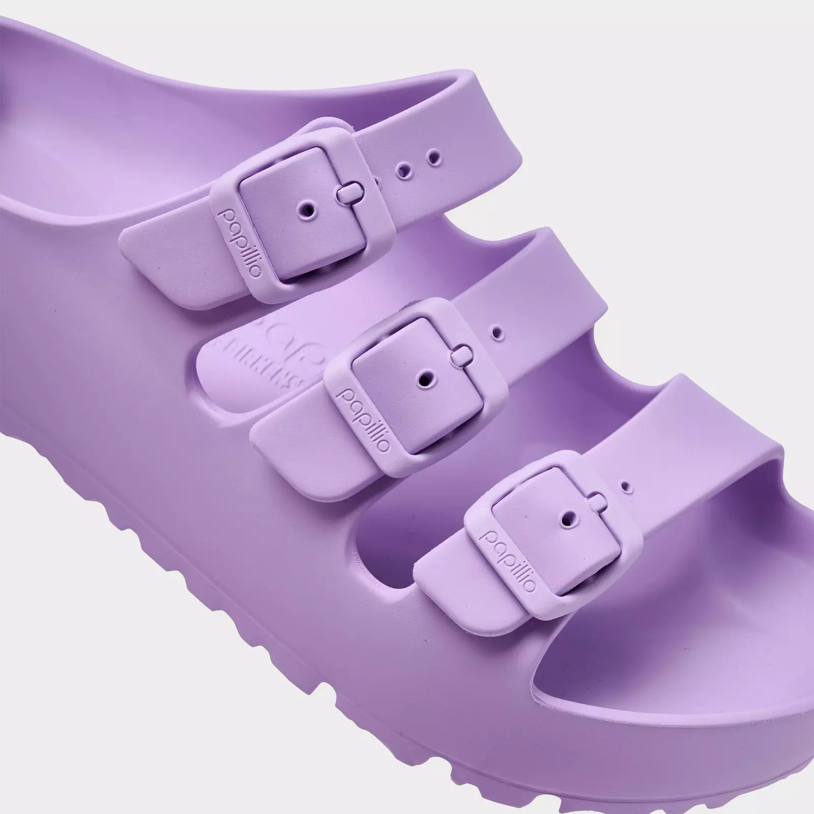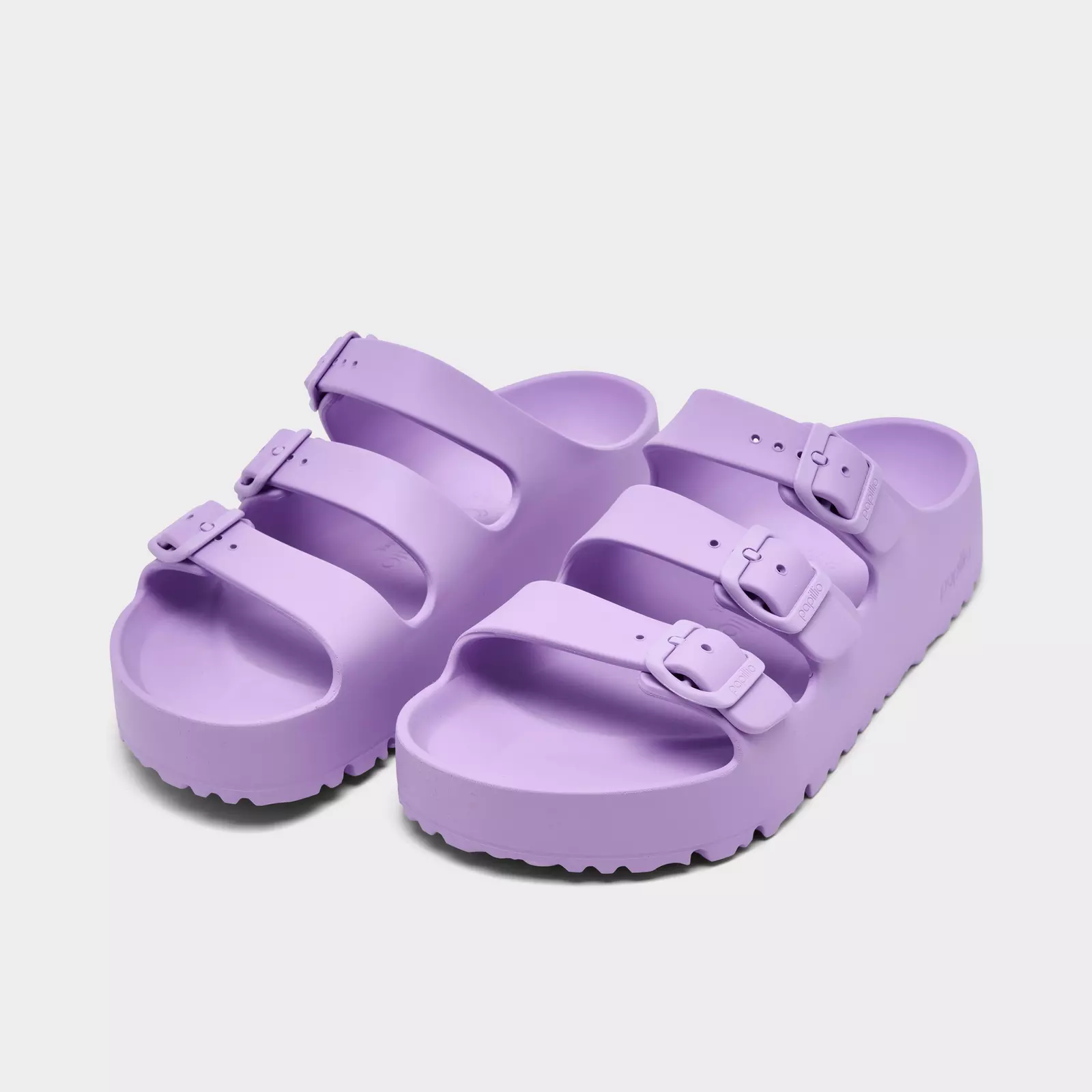 Классический силуэт Birkenstock выходит на новый уровень, а то и на два, а то и на три, с этими женскими сандалиями Birkenstock Florida Flex на платформе EVA. Изготовленные из синтетического, водостойкого и прочного материала EVA, эти сандалии на платформе оснащены тремя регулируемыми ремешками с пряжками в тон и анатомической стелькой из пробково-латексной смеси для длительного комфорта, соответствующего естественной форме вашей стопы.